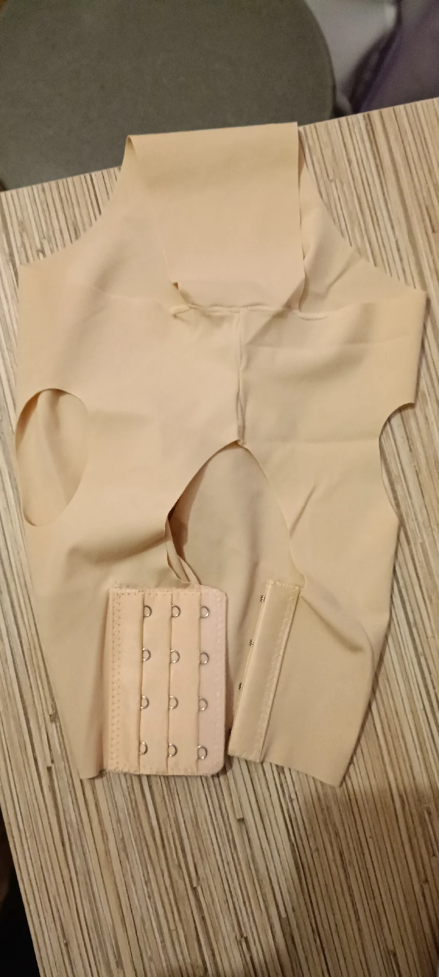 Ткань как эластичный бинт, подтягивает и не передавливает. Крючки держат, но тяжелее чем поставить липучку. В целом можно использовать после процедур. Доставка быстрая за 2 недели. Спасибо!