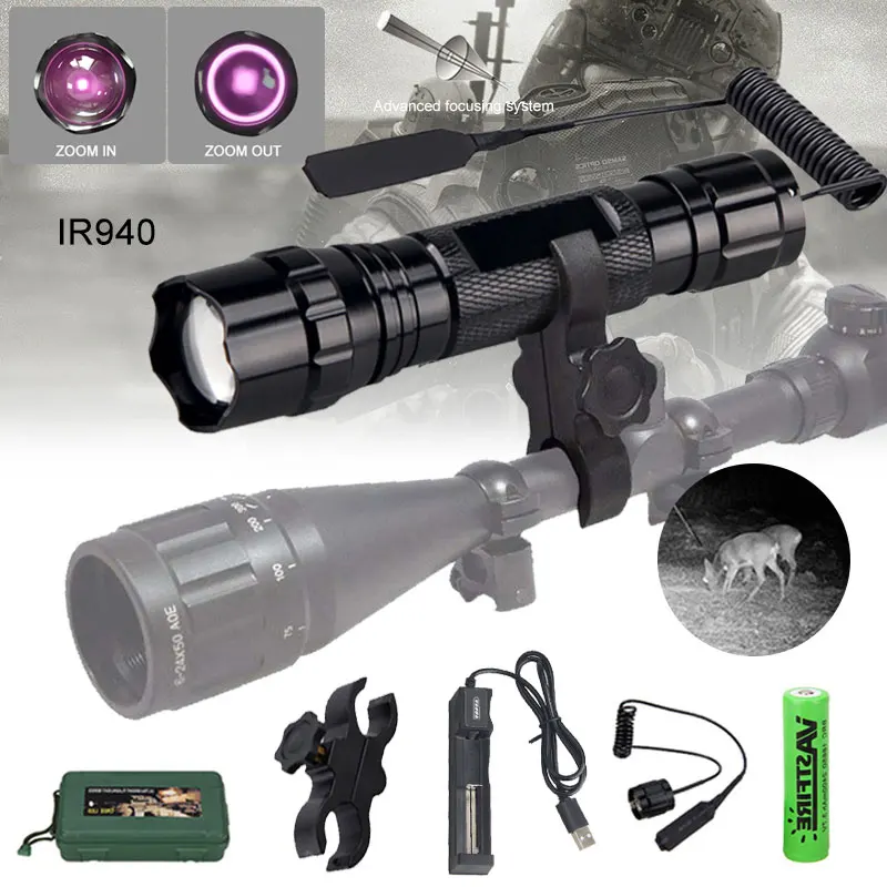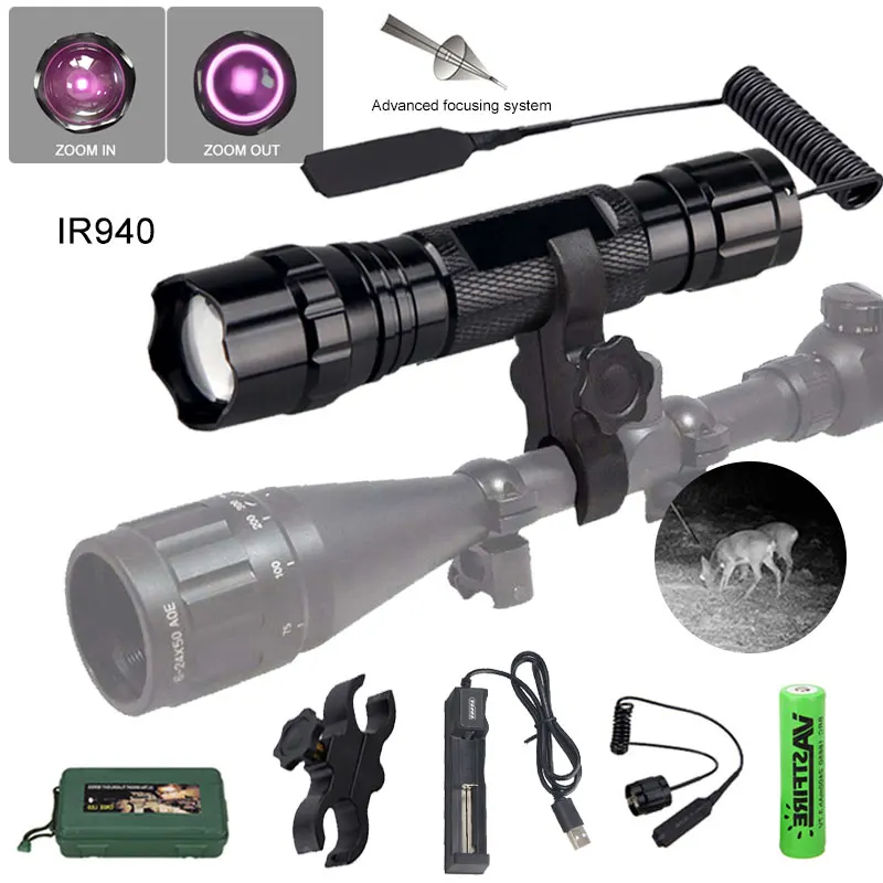 Охотничий фонарик с инфракрасным излучением, Профессиональный тактический водонепроницаемый уличный фонарь с ночным видением, с фокусировкой, 5 Вт, 850 нм