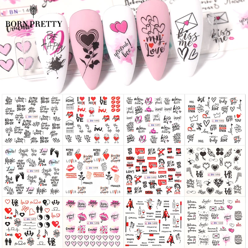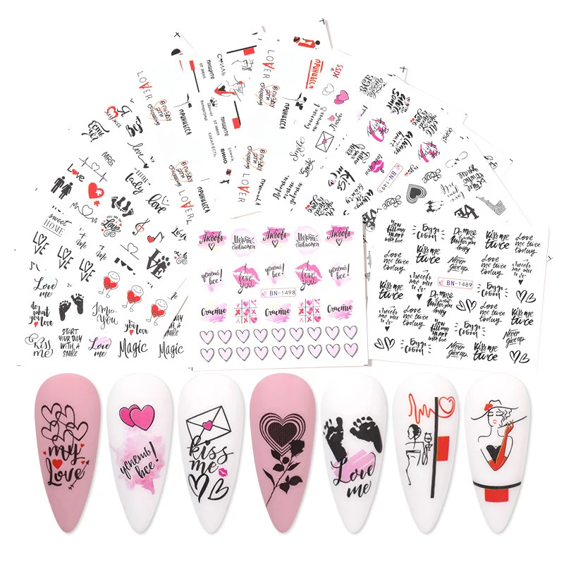 Валентинки сердце буквы наклейки для ногтей цветы Слайдеры для ногтей Водные Наклейки Советы Маникюр Дизайн ногтей украшения