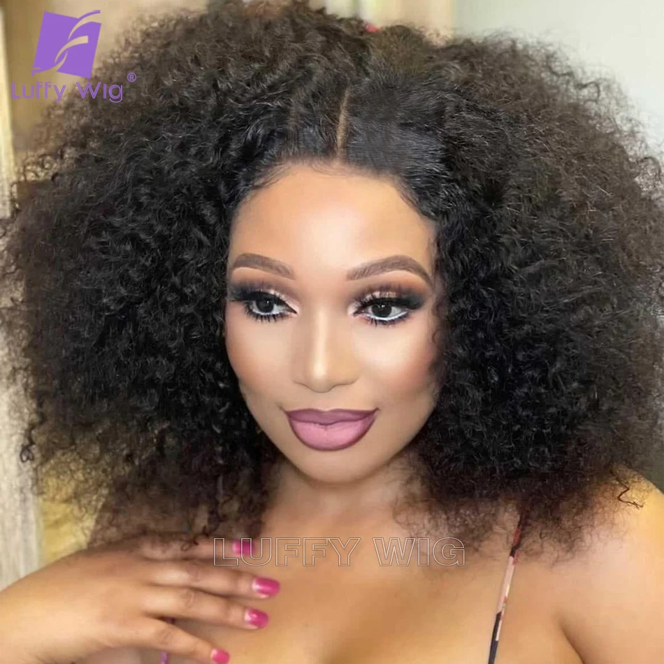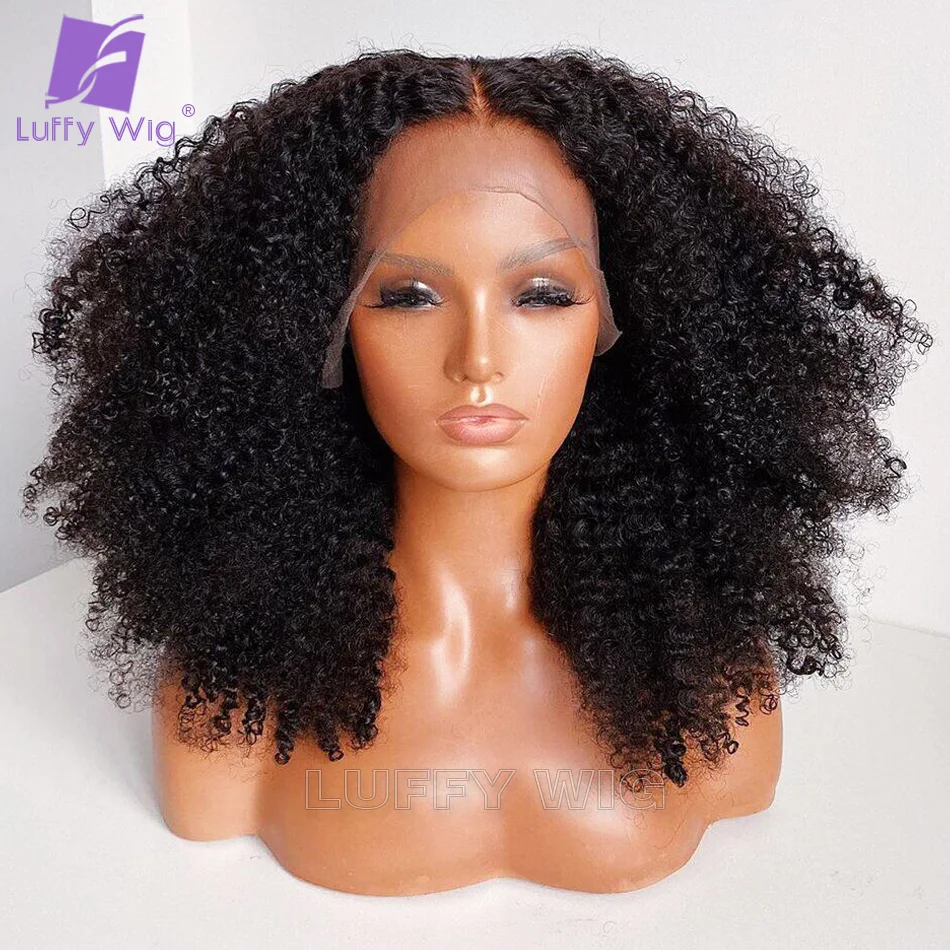 Кудрявый парик HD, прозрачный, на сетке, передний, al парик, человеческие волосы 13x 6, парик на сетке спереди, предварительно выщипанный, Remy, Перуанская плотность 200, Luffywig