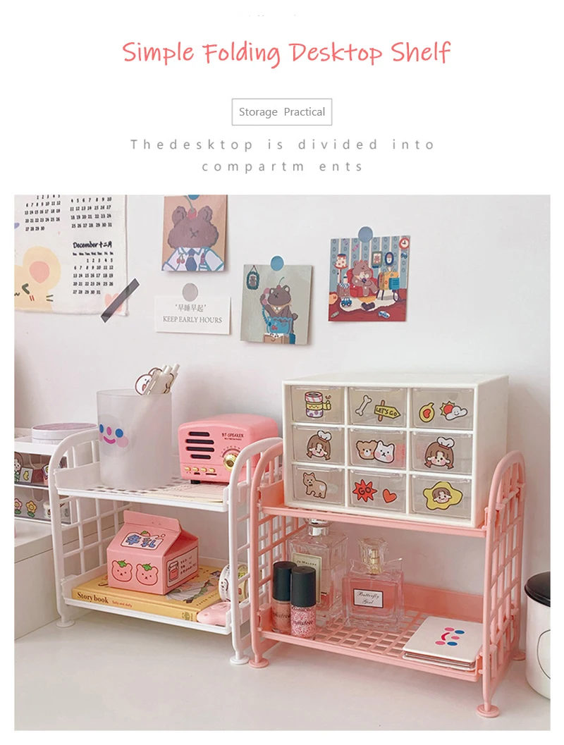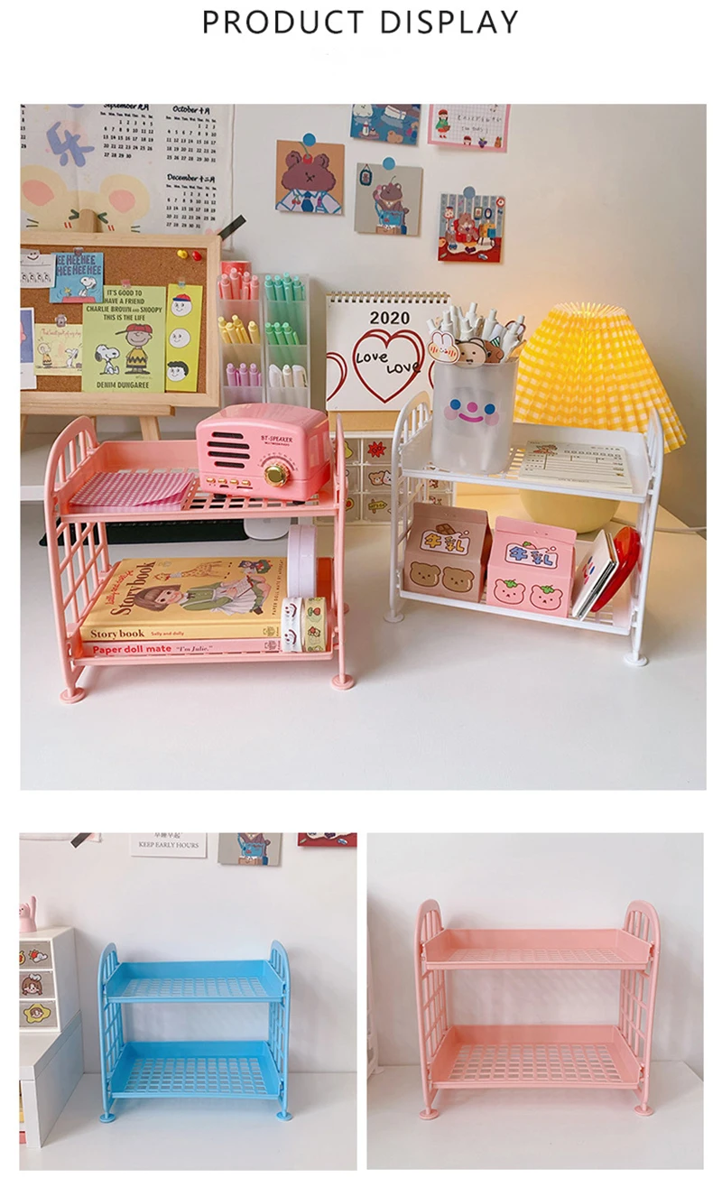 INS офисная полка для хранения Двухярусная подставка розовая Милая фотополка для кухни спальни канцелярские принадлежности для студентов 2021