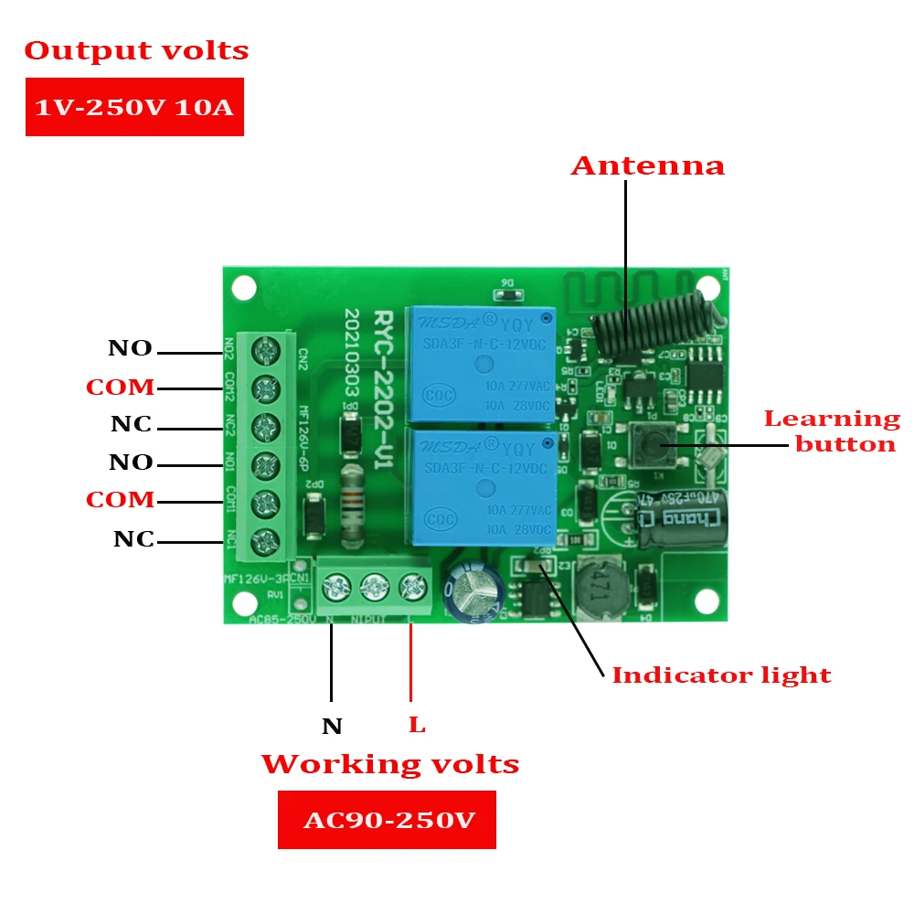 ХарактеристикиAC 110-220V 2CH Remote Control Receiver Switch