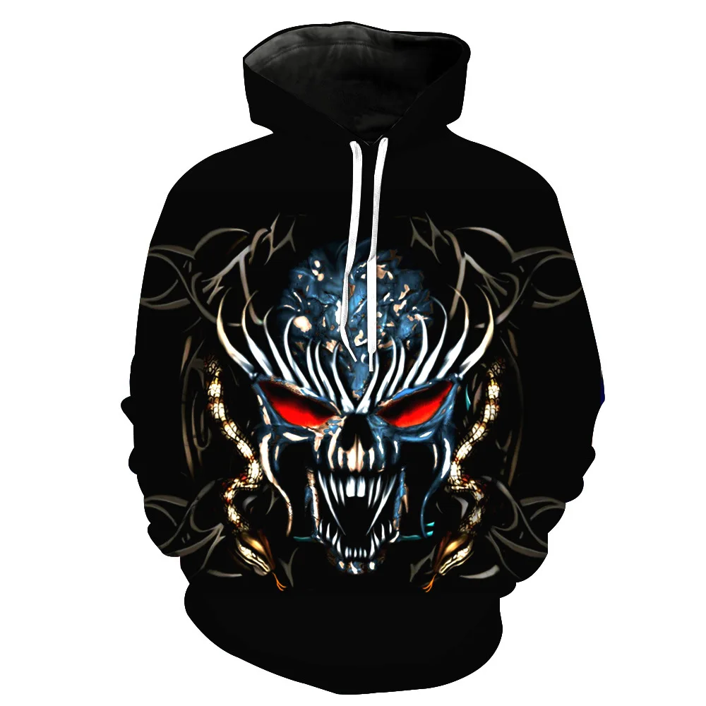 Толстовки с капюшоном в виде черепа и покера для мужчин и женщин, п...
