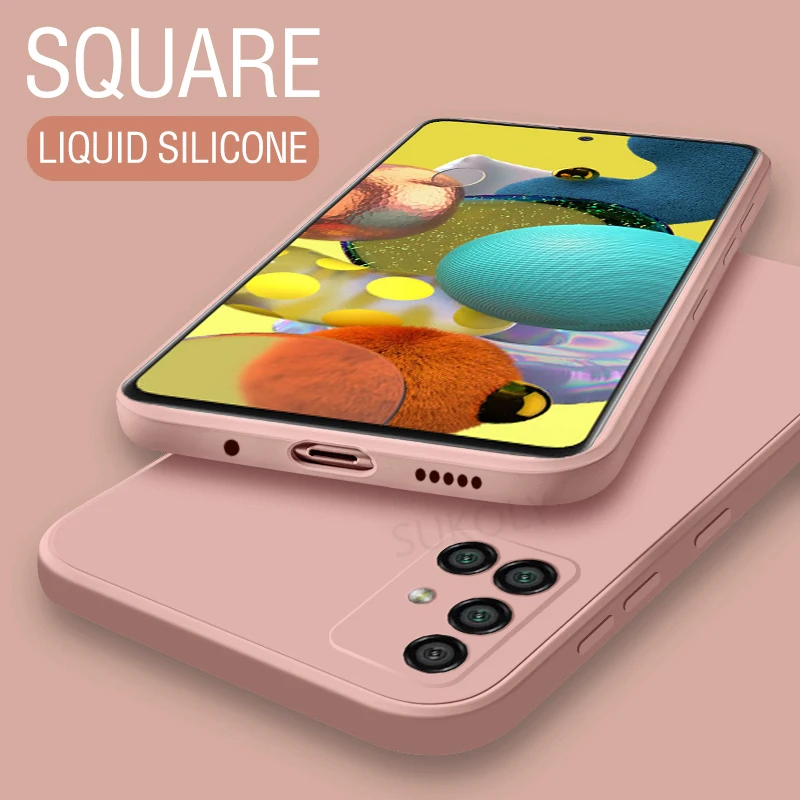 Квадратный чехол из жидкого силикона для Samsung Galaxy, a52, A72, ...
