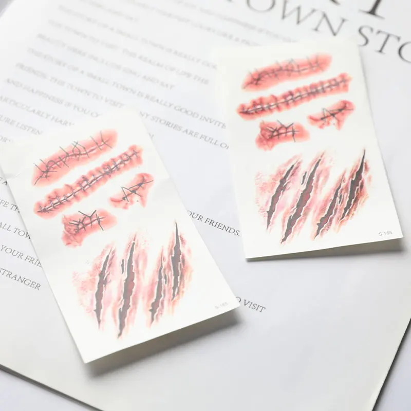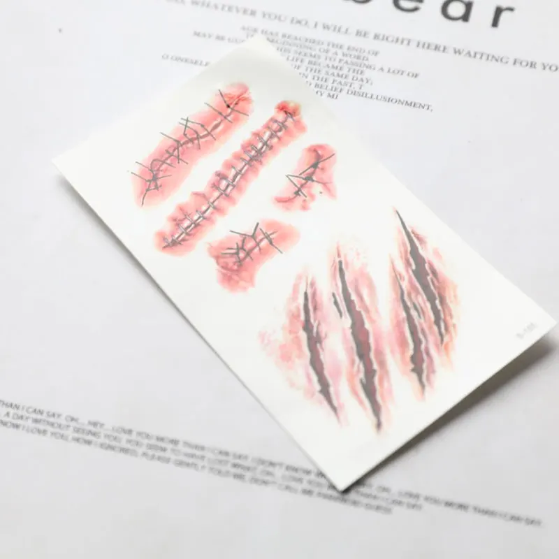 Наклейки с татуировками на Хэллоуин, имитация зомби, страшное кровотечение, шрамы, наклейки сделай сам, наклейки с травмами раны и крови