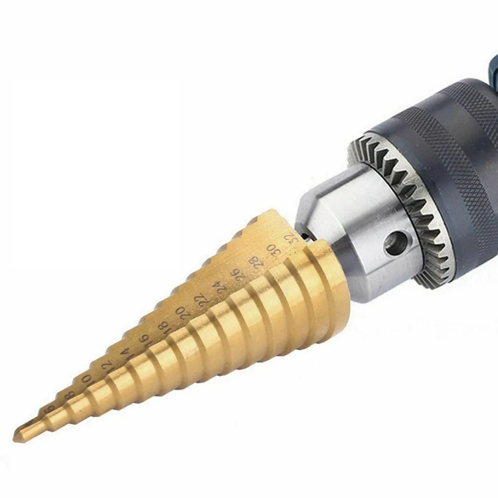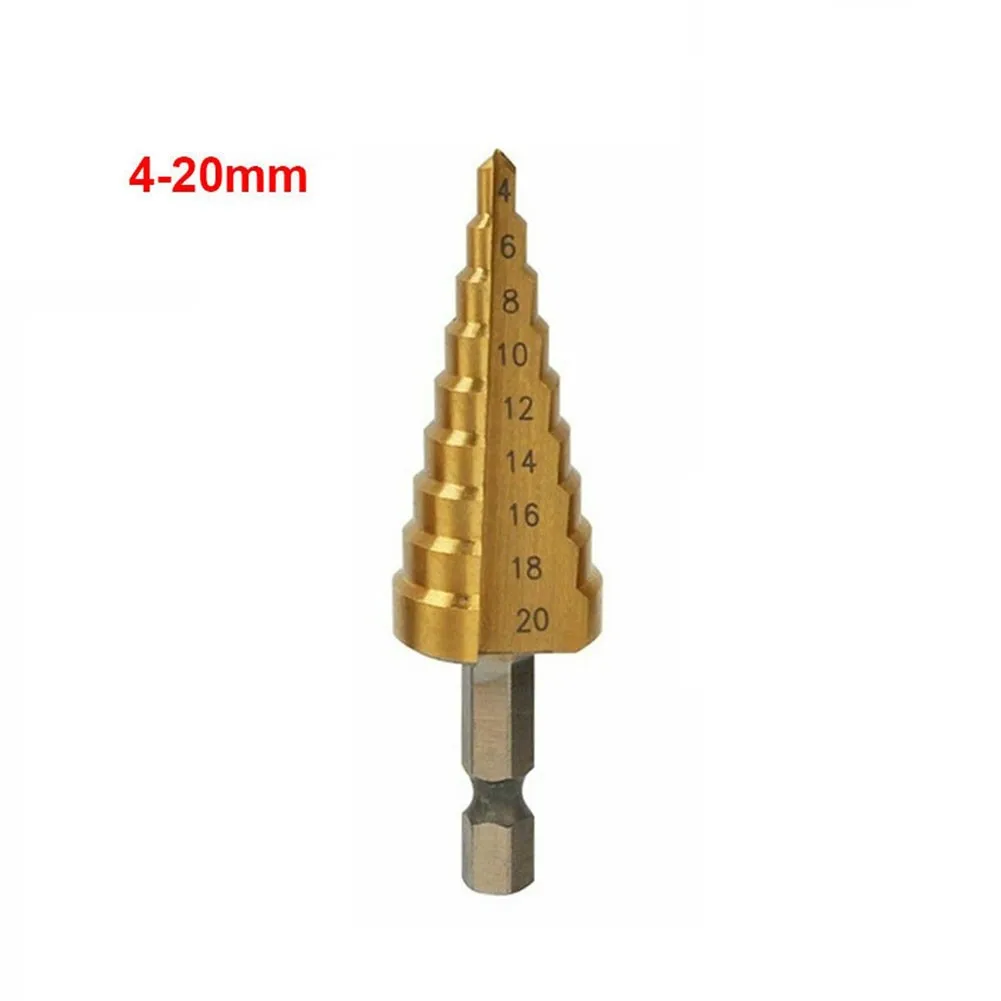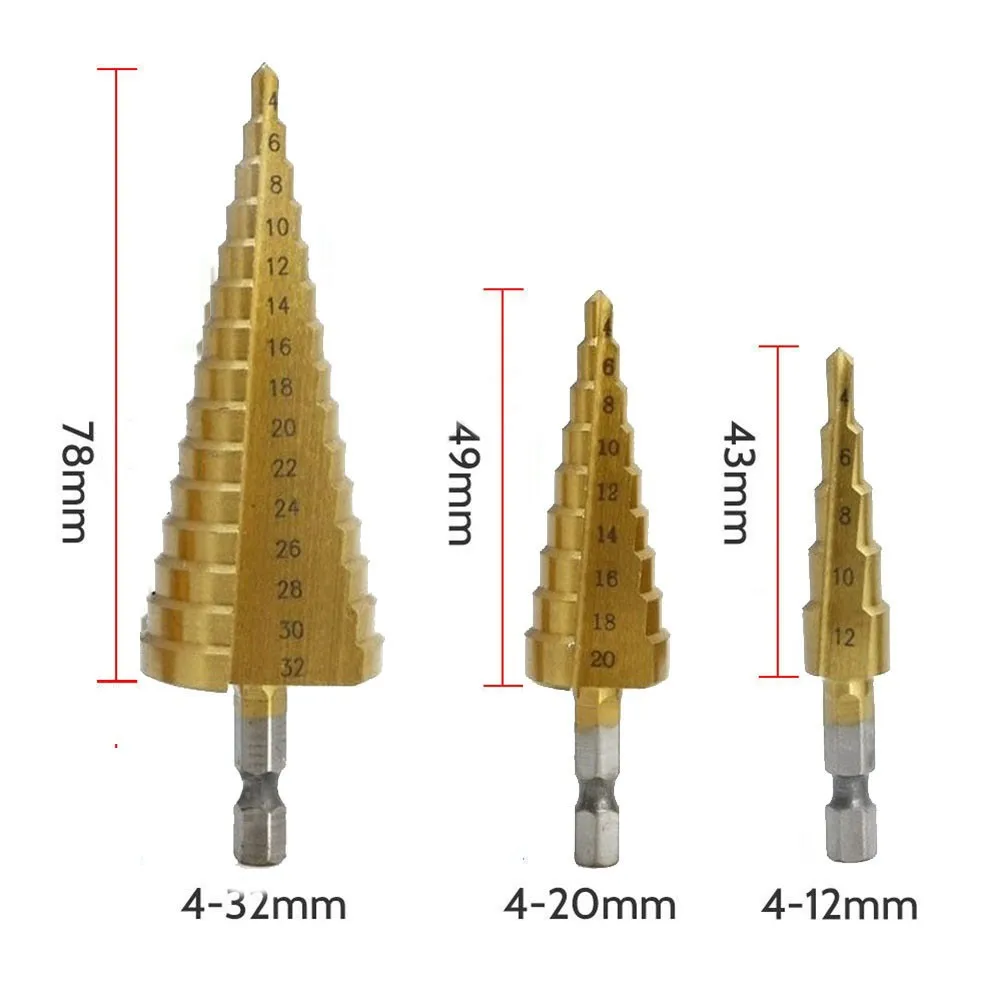 1 шт., ступенчатое Коническое сверло из быстрорежущей стали с титановым покрытием, золотистый шестигранный хвостовик, металлический нож для открывания отверстий по дереву, 3-12 мм, 4-12 мм, 4-20 мм