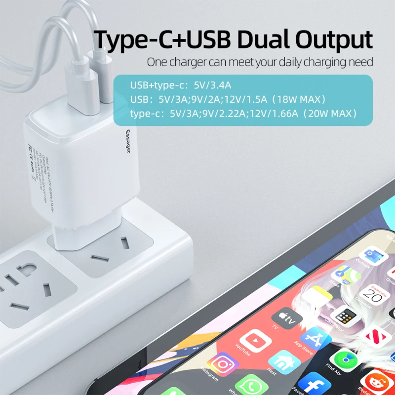 Essager Быстрая быстрая зарядка 3,0 PD + QC 20 Вт USB с разъемом Type-C для IPhone 13 12 Pro Max мини зарядное устройство EU US UK