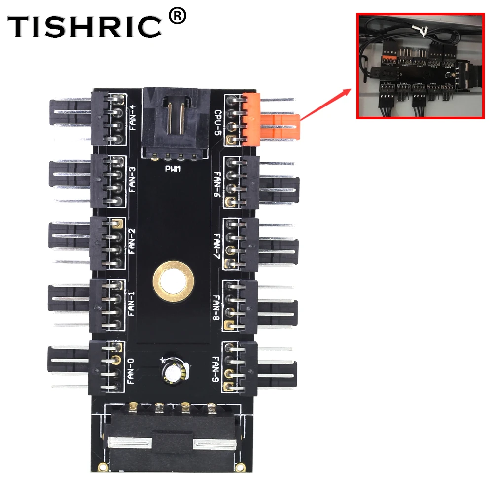 TISHRIC PWM, охлаждающий вентилятор, док-станция, устройство для охлаждения, розетка питания 12 В, от 1 до 10, 4-контактный блок питания Molex, адаптер контроллера скорости ПК