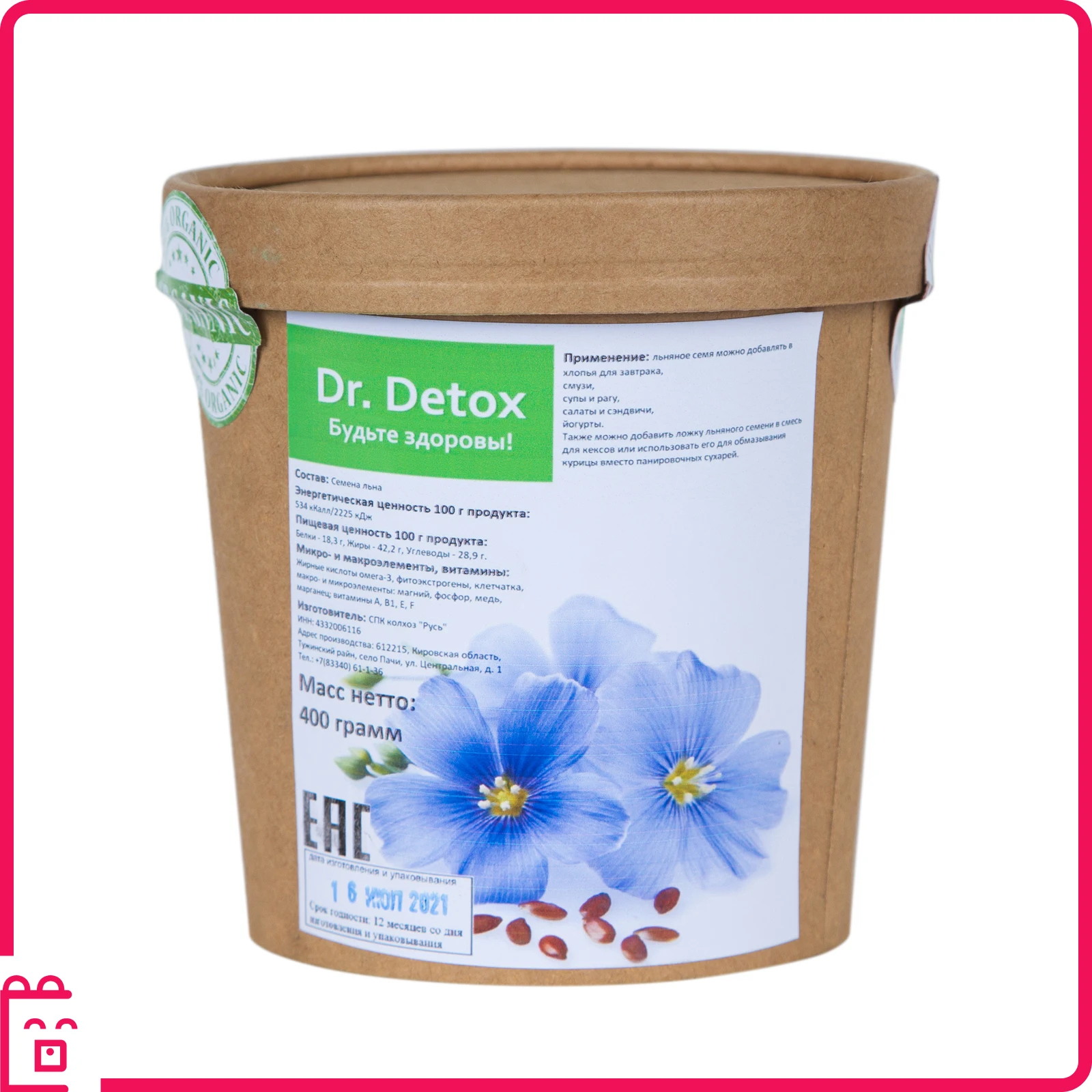 Состав: Жирные кислоты омега-3, фтоэкстрогены, клетчатка, макро- и микроэлементы: магний, фосфор, медь, марганец, витамины А, В1, Е, F