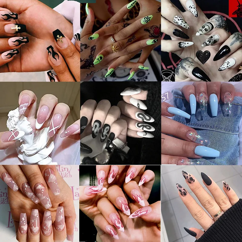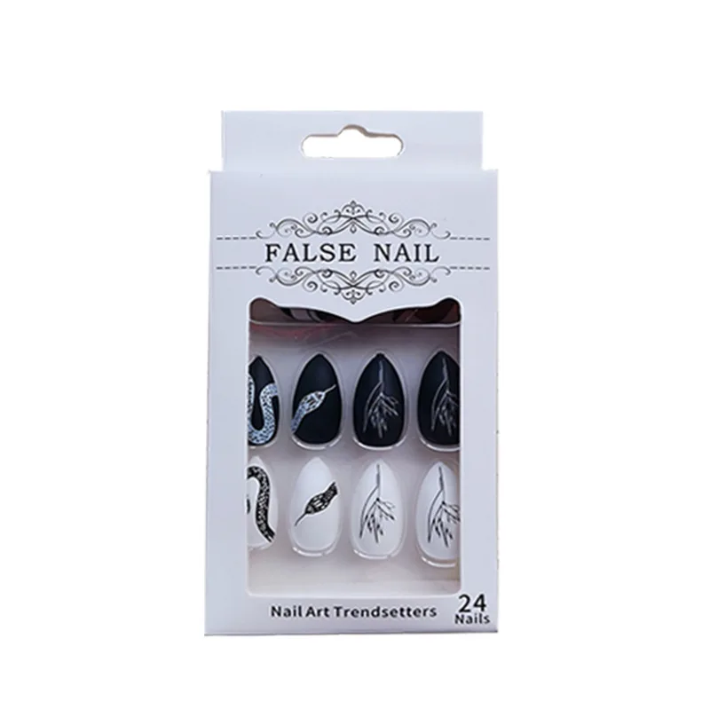 24 шт.компл. длинные искусственные ногти в стиле панк со змеиным узором черные белые матовые искусственные ногти Типсы для маникюра Инструменты