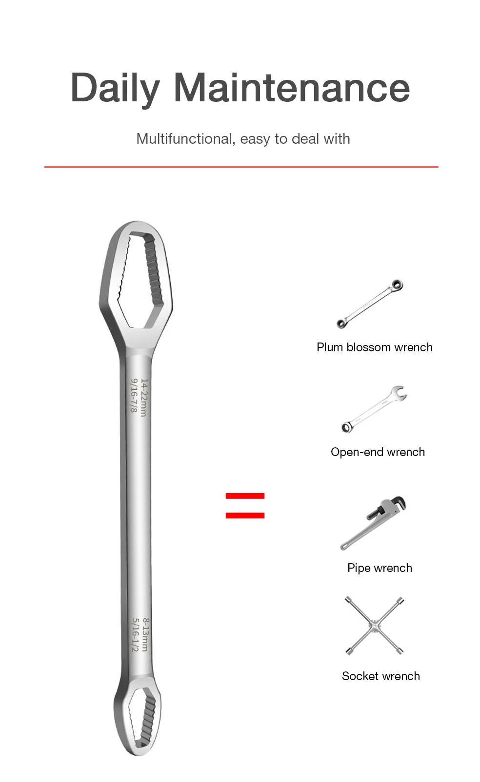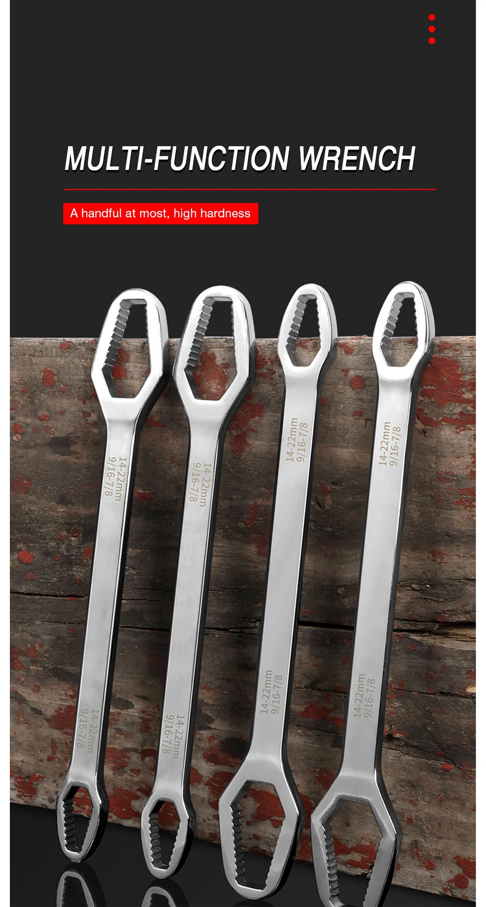 1. Ключ, изготовленный из высококачественной хромованадиевой стали, имеет высокую твердость и устойчив к коррозии.2. Гаечный ключ универсальный. Это используется для техническое обслуживание автомобилей/механиков/велосипедов/мотоциклов и других смежных отраслей обслуживания.3. Гаечный ключ легко переносится и хранится, а также может быть подарен родственникам и друзьям.4. Гаечный ключ нелегко сломать из-за затяжки и вращения гаек и болтов.