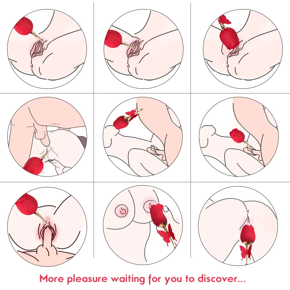 [Вибрация клитора] изготовлен из безопасного медицинского силикона, нетоксичен, не имеет запаха и вызывает аллергию, поглотитель имеет форму красной розы. Милый и романтичный, это хороший подарок для друга или для вас! У женщины должна быть красивая роза, чтобы порадовать себя и жить для себя.