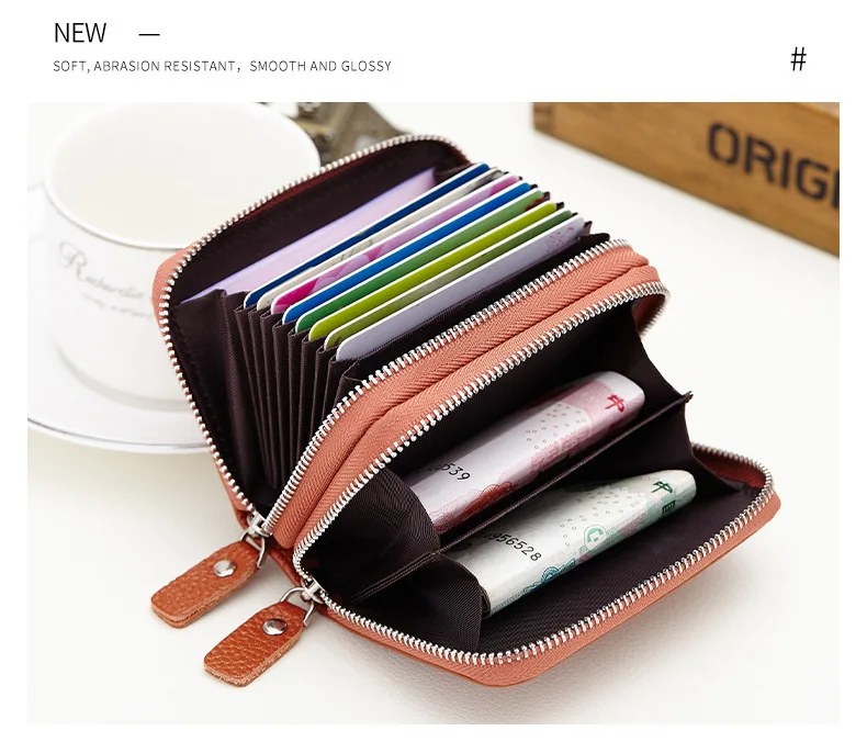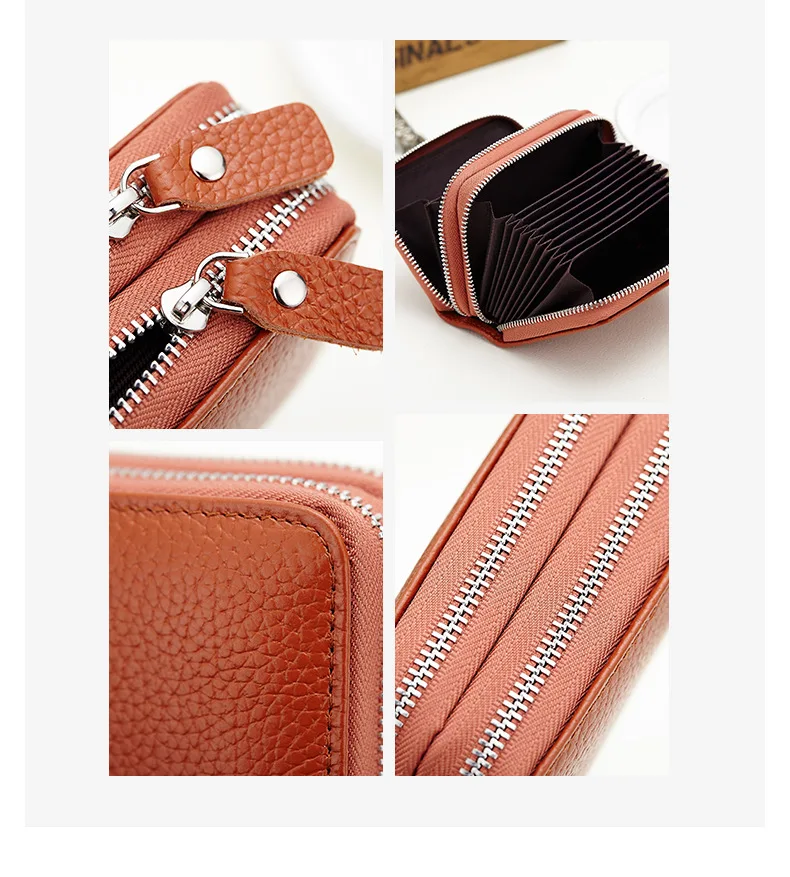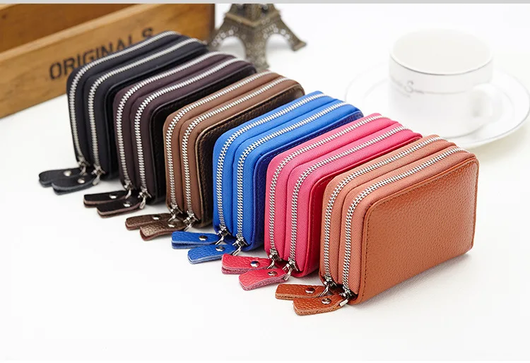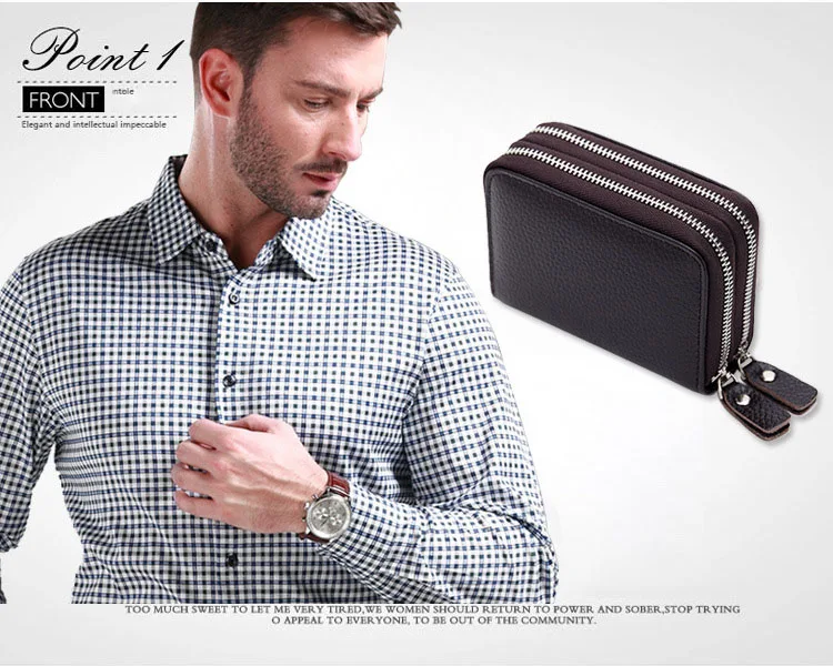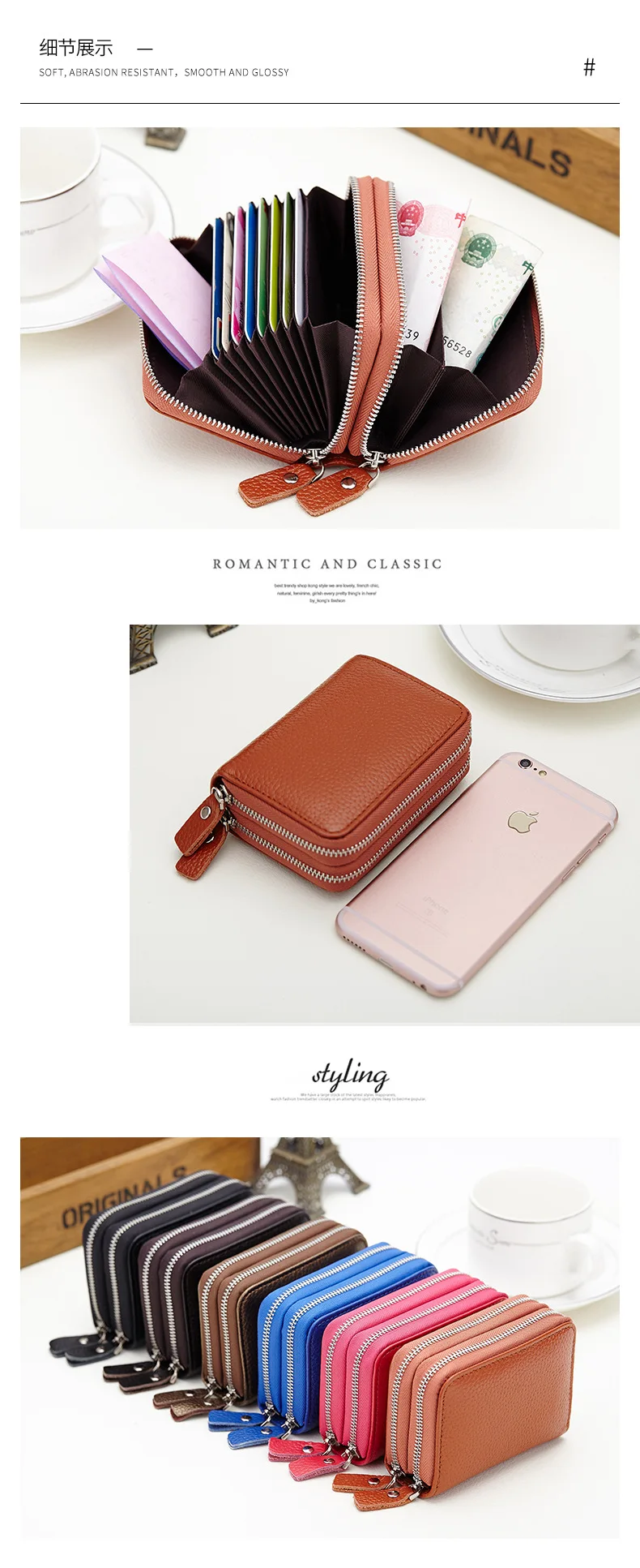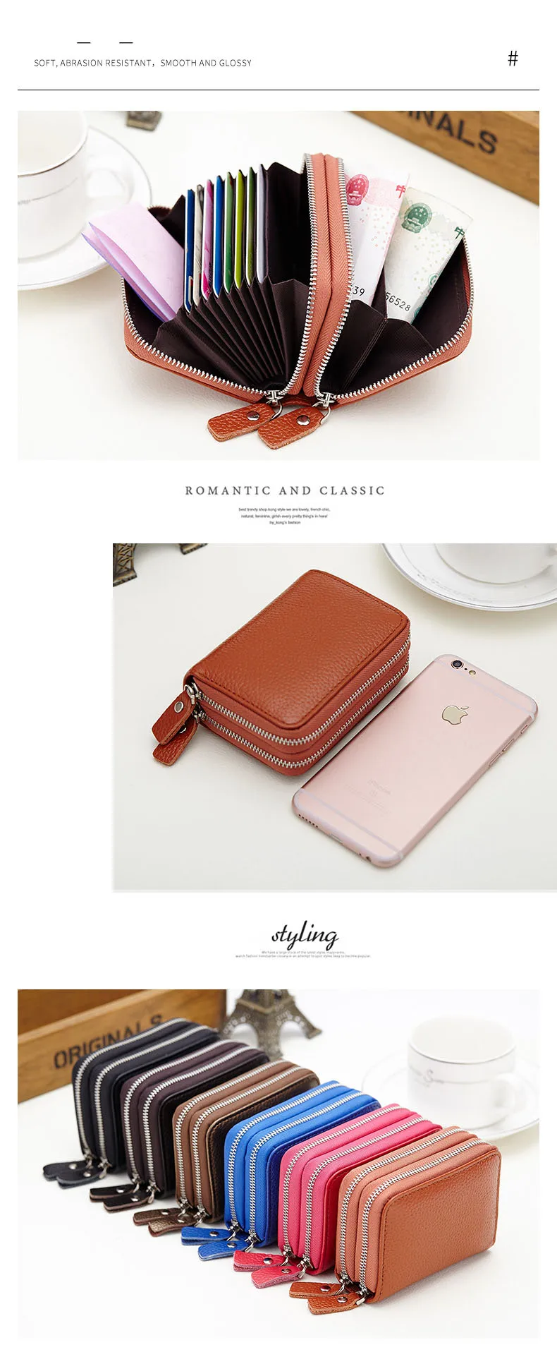 Кошелек с 10 отделениями для карт, мужской бумажник для карт, Кожаный многофункциональный женский и мужской держатель для карт, кошелек для монет и удостоверения личности с двойной молнией