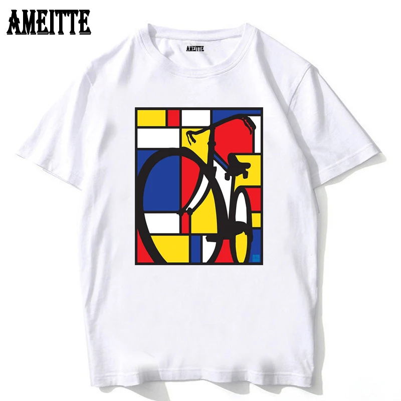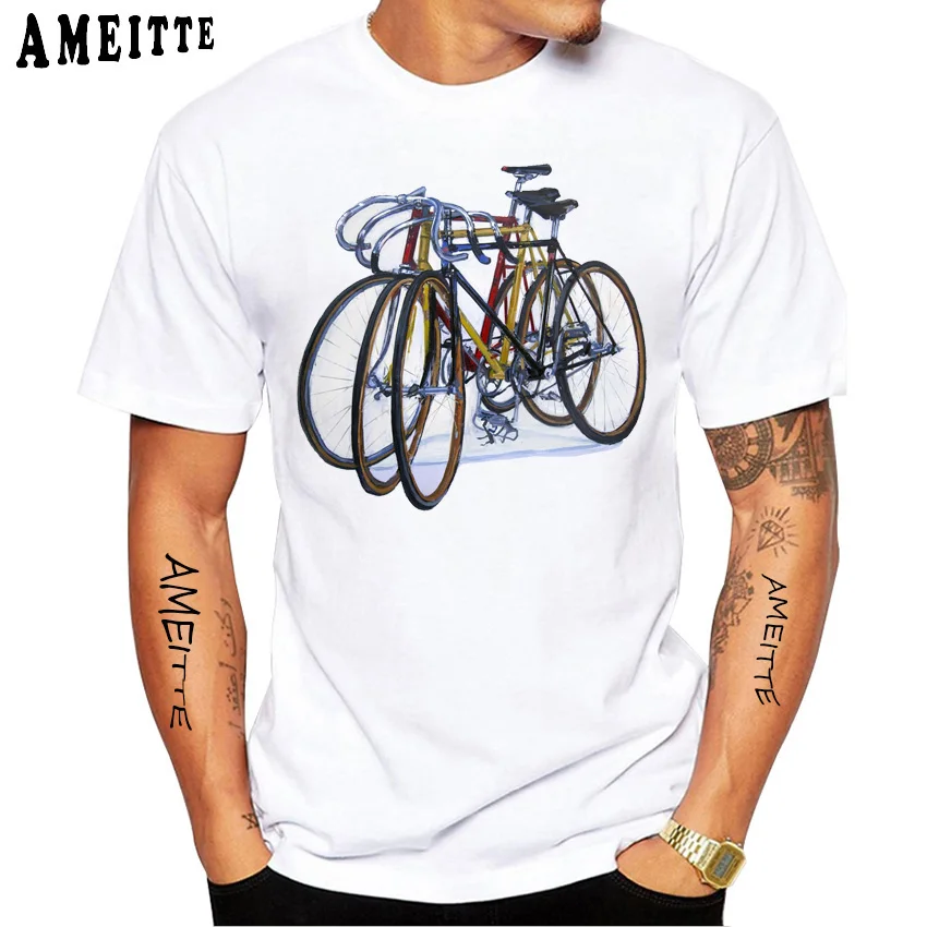 Футболка мужская винтажная велосипедная, Классическая Спортивная тенниска с фиксированным снаряжением, Повседневная белая майка с коротким рукавом в стиле хип-хоп, лето