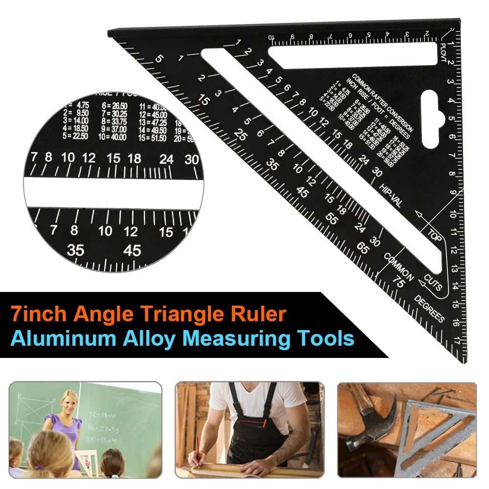 Треугольная линейка 7 дюймов, угловой транспортир из алюминиевого сплава, Метрическая квадратная измерительная линейка, инструменты для столярных зданий и конструирования, измерительный прибор