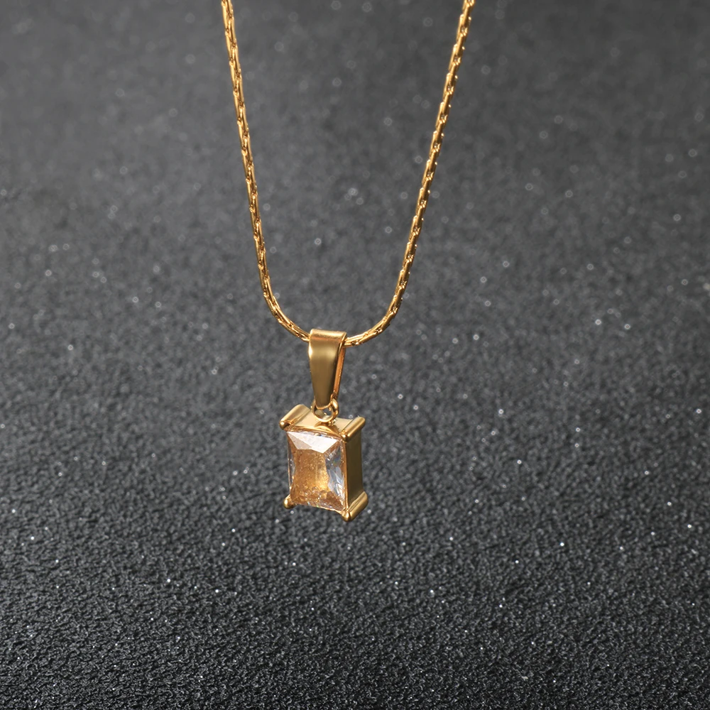 Роскошное женское ожерелье с белым квадратным фианитом, позолоченное ожерелье 18 карат для нержавеющей стали, модные ювелирные украшения
