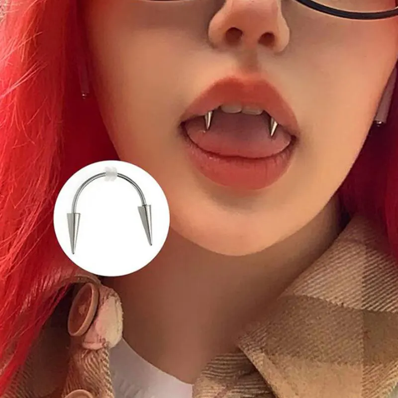 Тигриные зубы, перфорированные ювелирные изделия, зубы зомби, ногти, улыбка, губы, ногти, сплошной цвет, титановая сталь, ногти для губ, универсальные геометрические