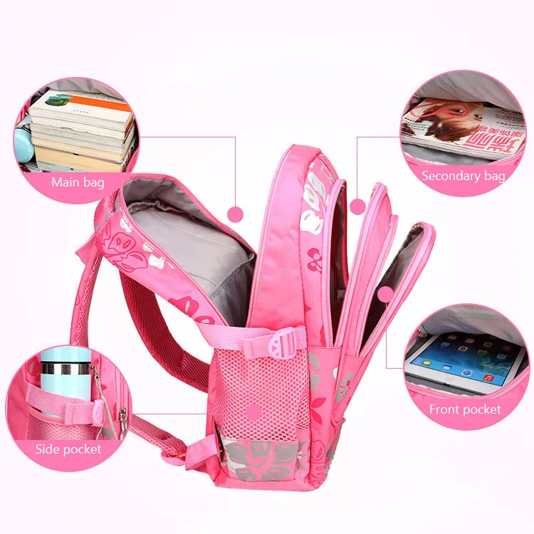 Модный детский школьный рюкзак с цветочным принтом для девочек-подр...
