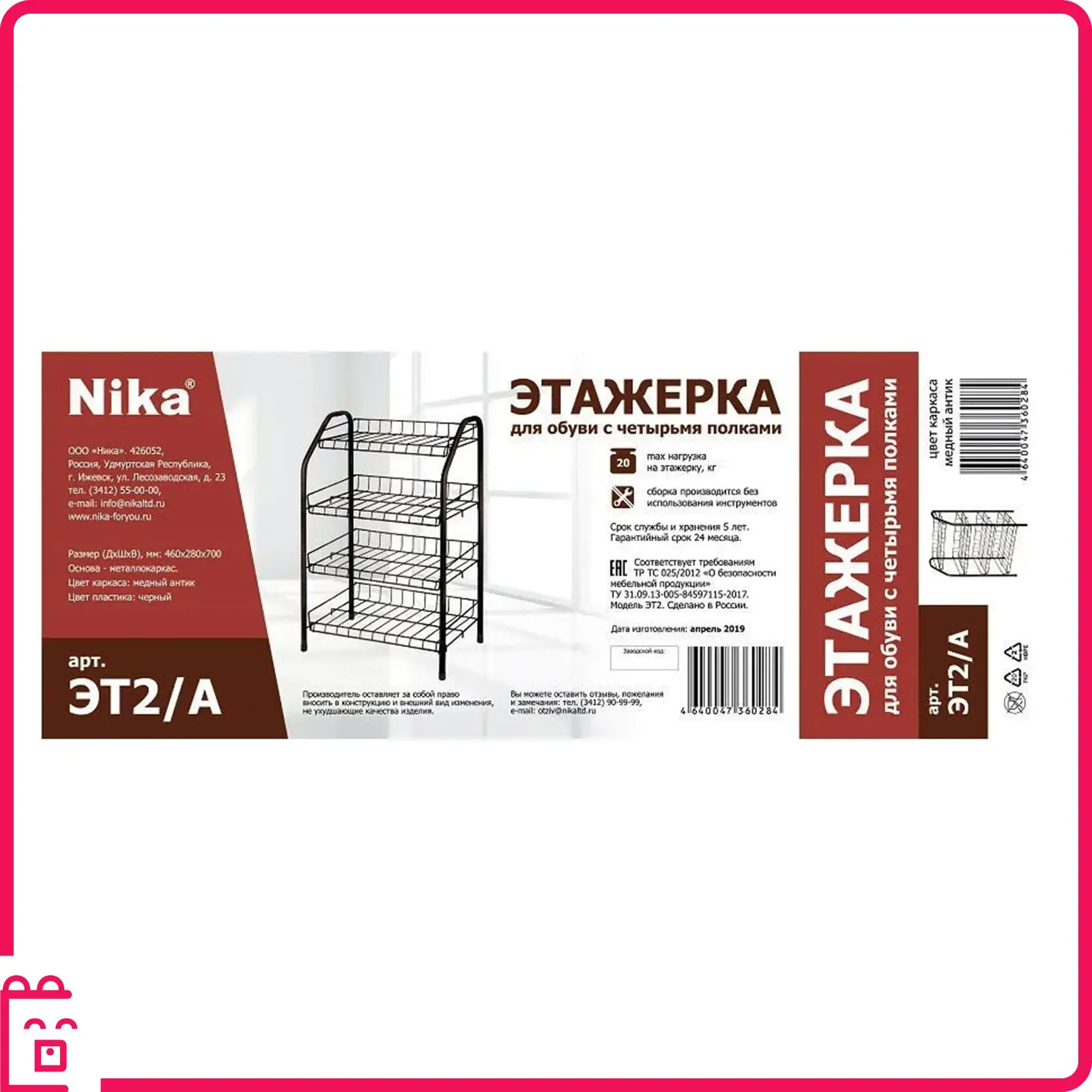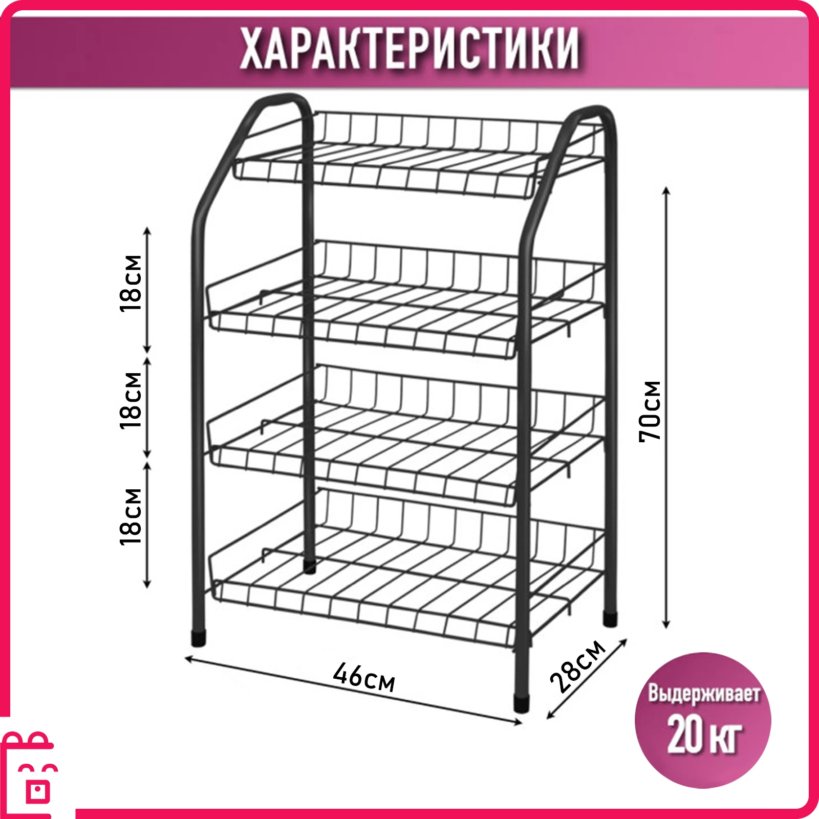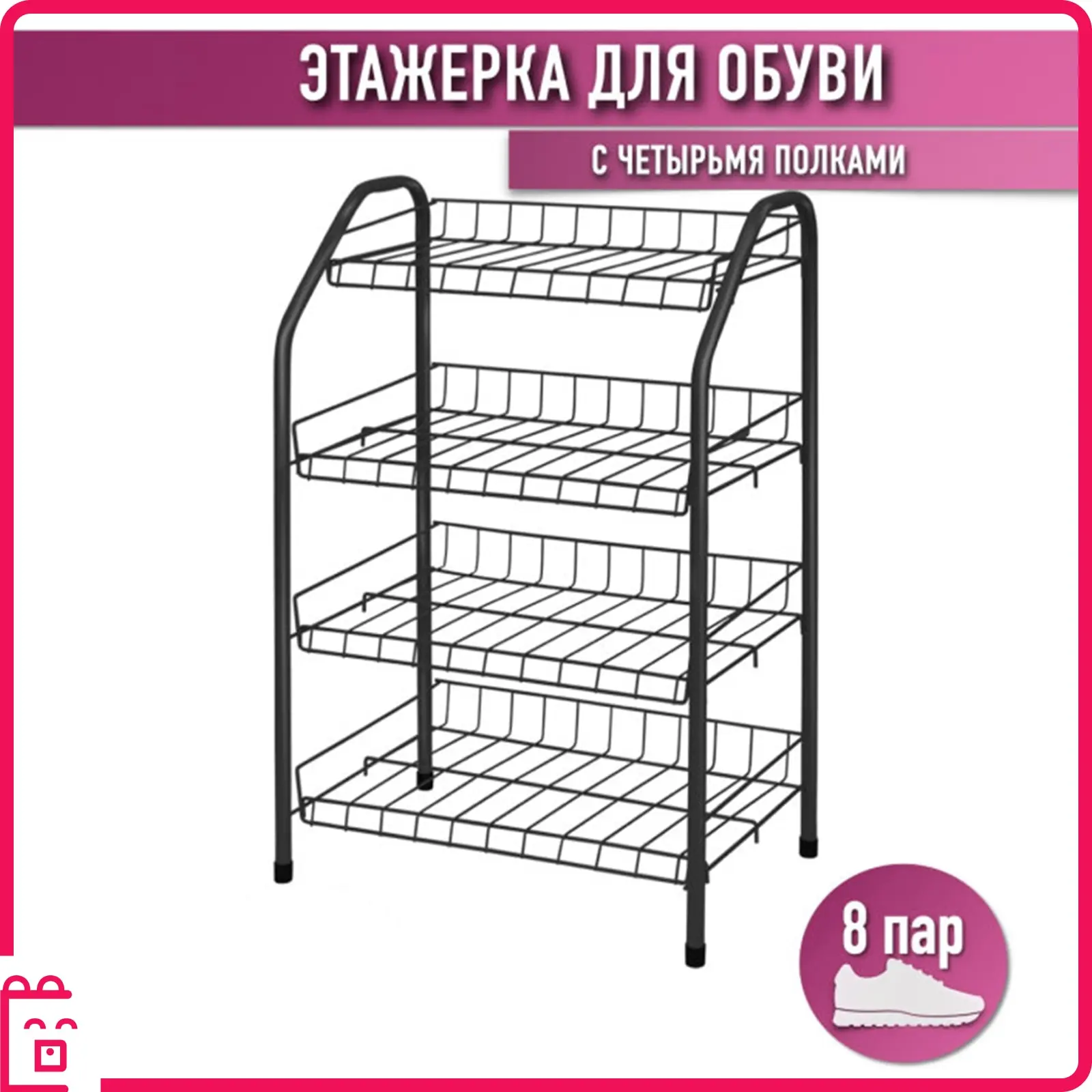Подставка для обуви NIKA металлическая, этажерка с 4 полками в прихожую Полка для обуви Этажерка для обуви