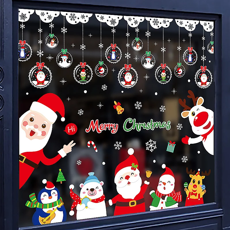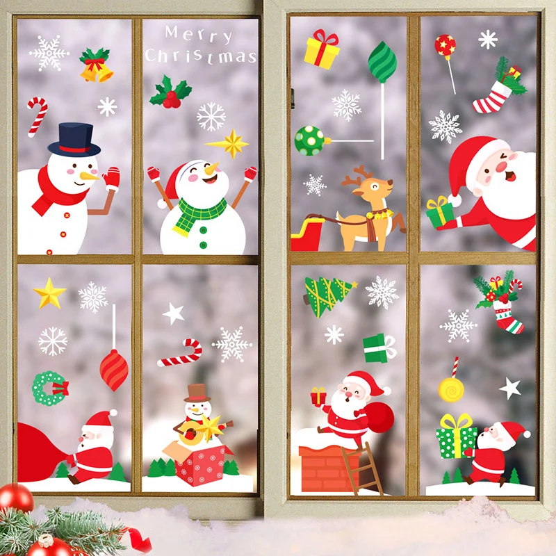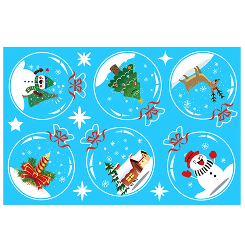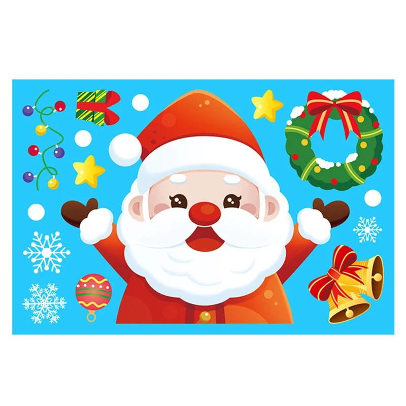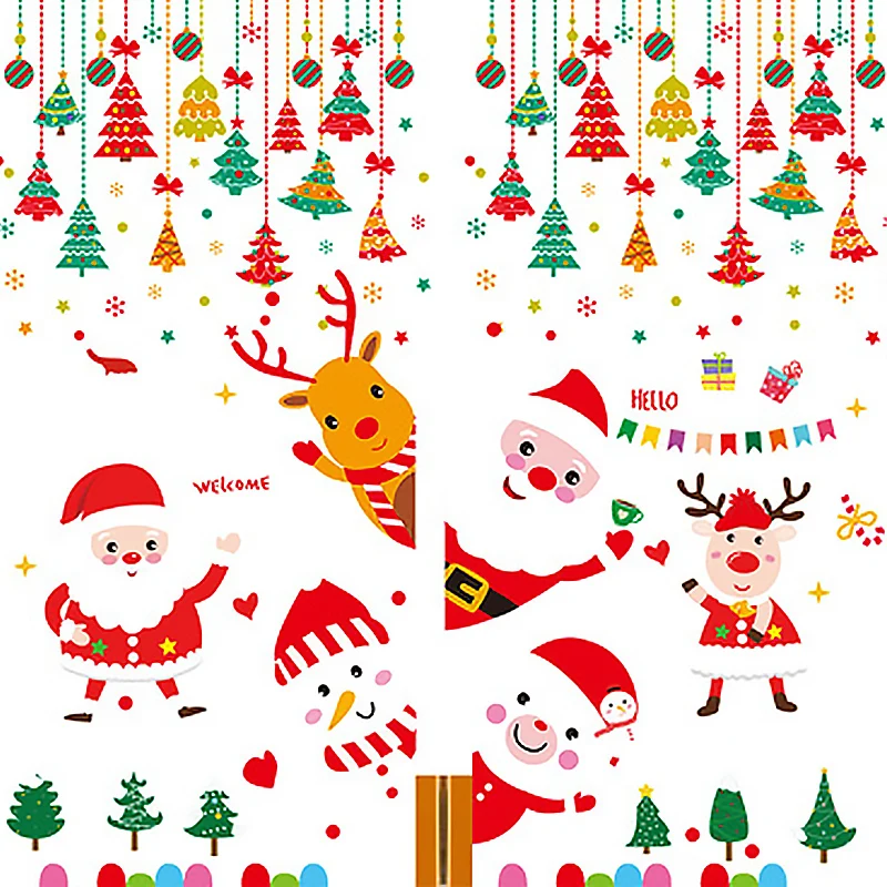 Рождественская Настенная Наклейка s, двухсторонняя статическая наклейка, Санта-Клаус, олень, Рождественская елка, окно, снежинки, новогодняя декоративная наклейка