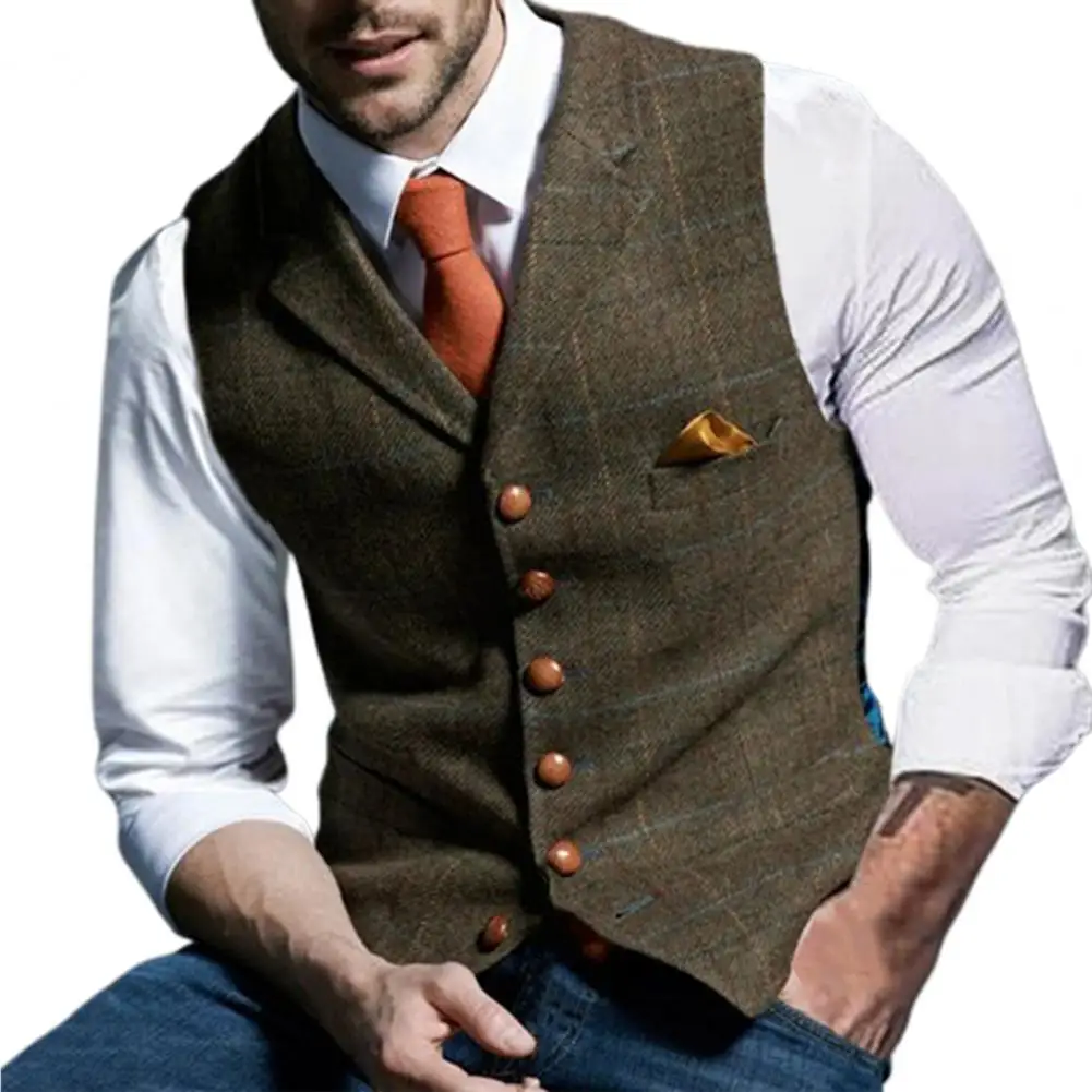 Мужской жилет с отложным воротником, однобортный мужской жилет в стиле панк без рукавов для бизнеса