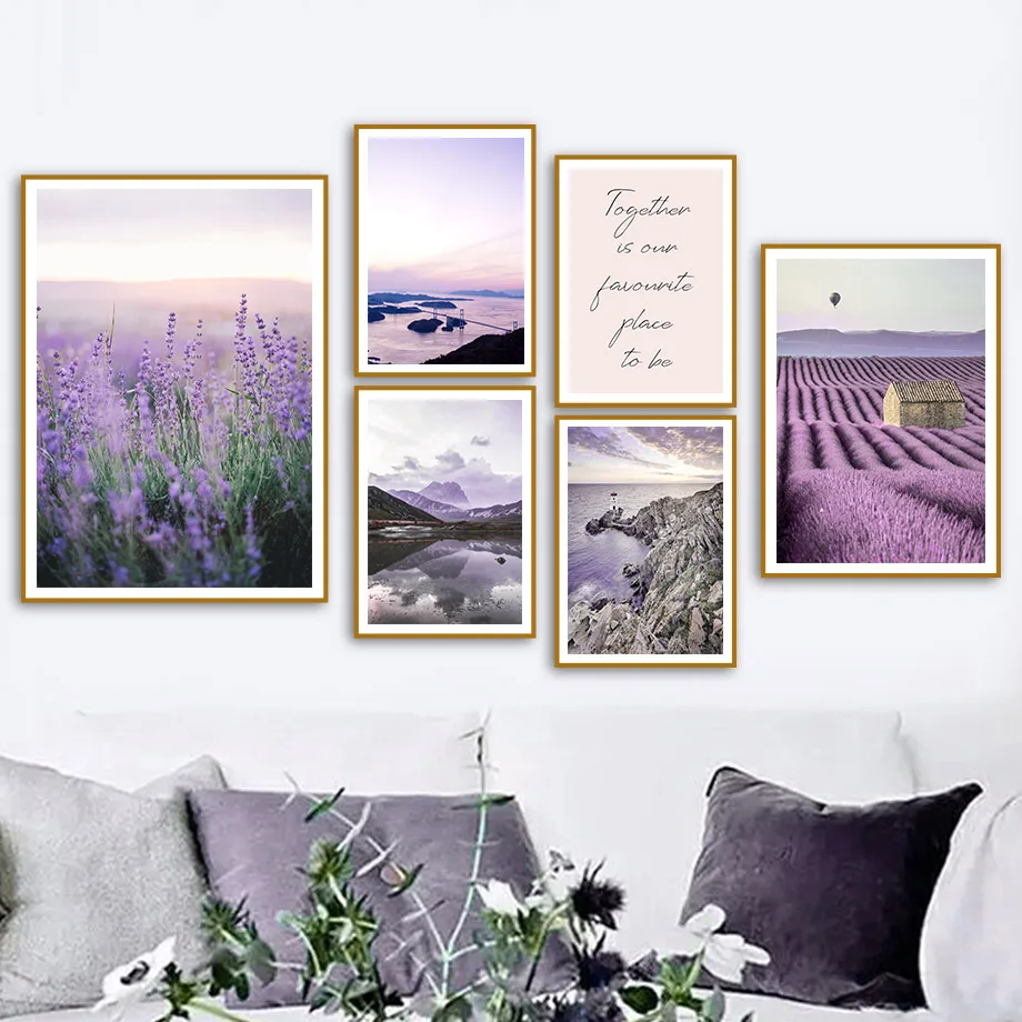 Настенная картина с изображением дома лаванды озера моста абстрактные линии на холсте в скандинавском стиле плакаты и принты настенные картины для декора гостиной