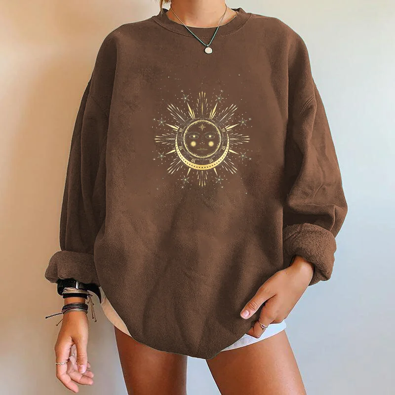 Женский свитшот с длинным рукавом, с принтом золотого солнца, луны ...
