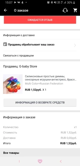 Очень странный продавец. Сперва просил доплату. Я согласился. Но после доплаты он просто не отправил заказ. Такое впечатление, что их там двое, злой и добрый)