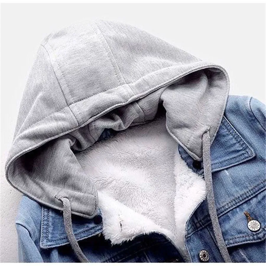 Женская джинсовая куртка с капюшоном, зимняя повседневная короткая ...