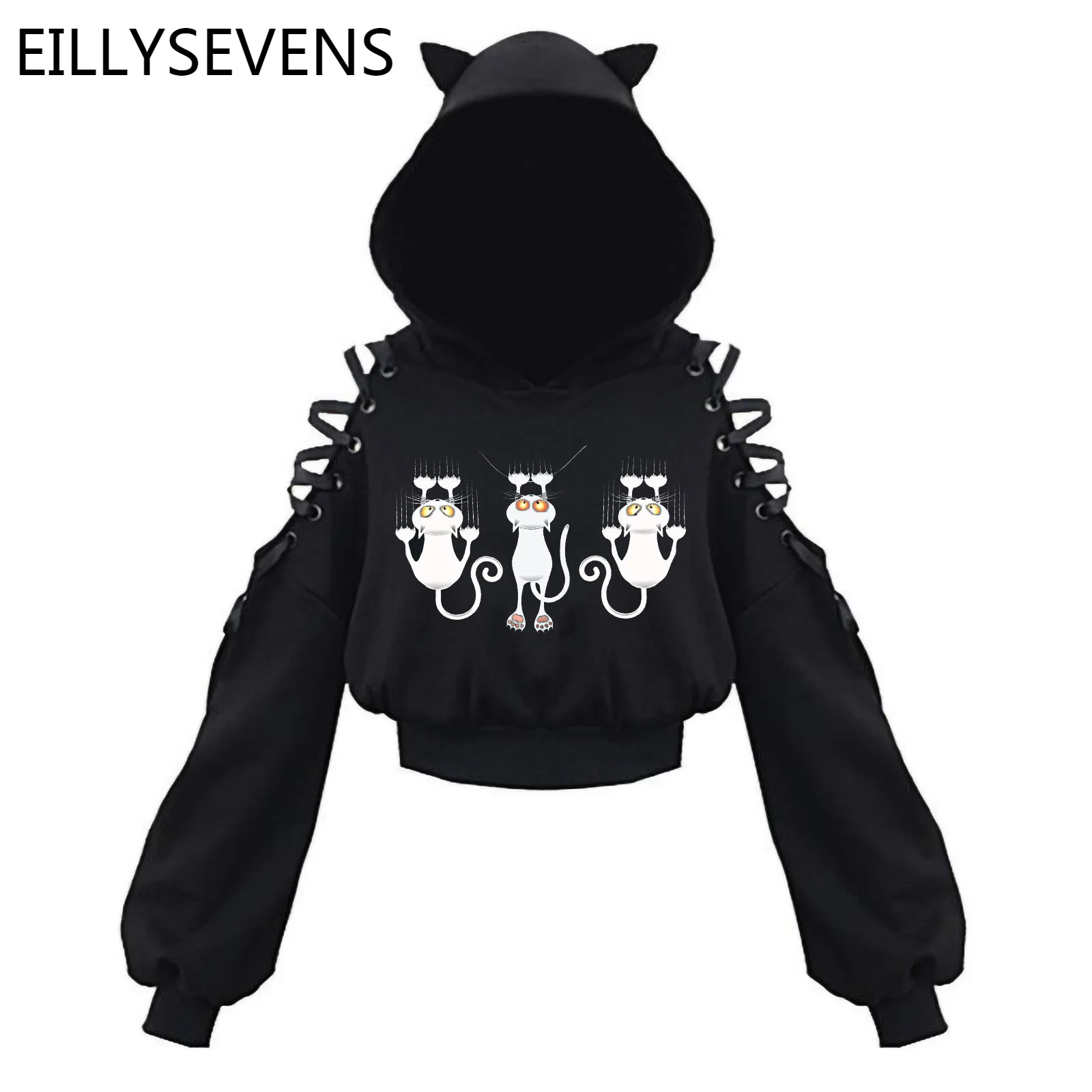 Женские худи с кошачьими ушами, пуловер с длинным рукавом, толстовка с капюшоном, милая блузка
