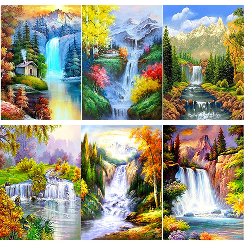 Алмазная 5D картина сделай сам, картина из страз с водопадом, вышив...