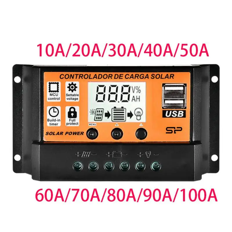 Автоматический контроллер заряда солнечной батареи, 10 А20 А30 А40 А50 а100 А, ЖК-дисплей, двойной USB-Регулятор солнечной панели, зарядное устройство с двойным USB, 12 В, мощность 4 в