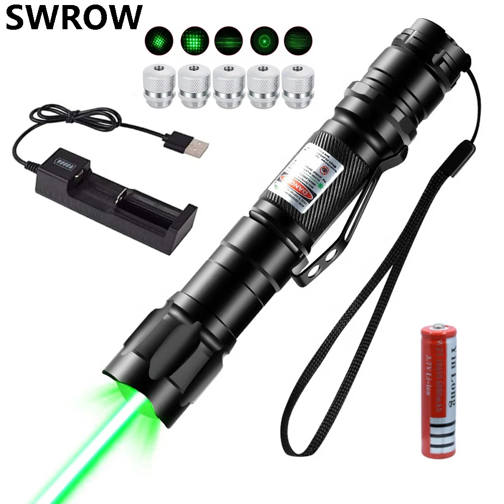 Зеленая лазерная указка с USB-зарядкой, лазерный фонарик 5000 м, 532 нм, мощная лазерная указка 009, с батареей 18650 и зарядным устройством USB