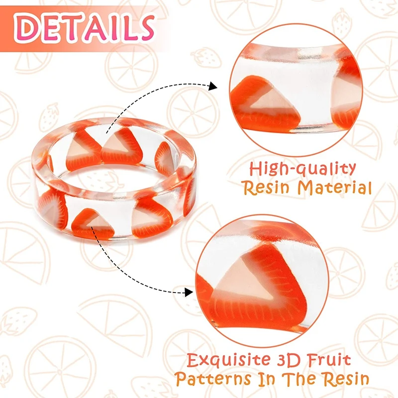 8 шт фрукты из смолы набор колец милый прозрачный пластик для колец...