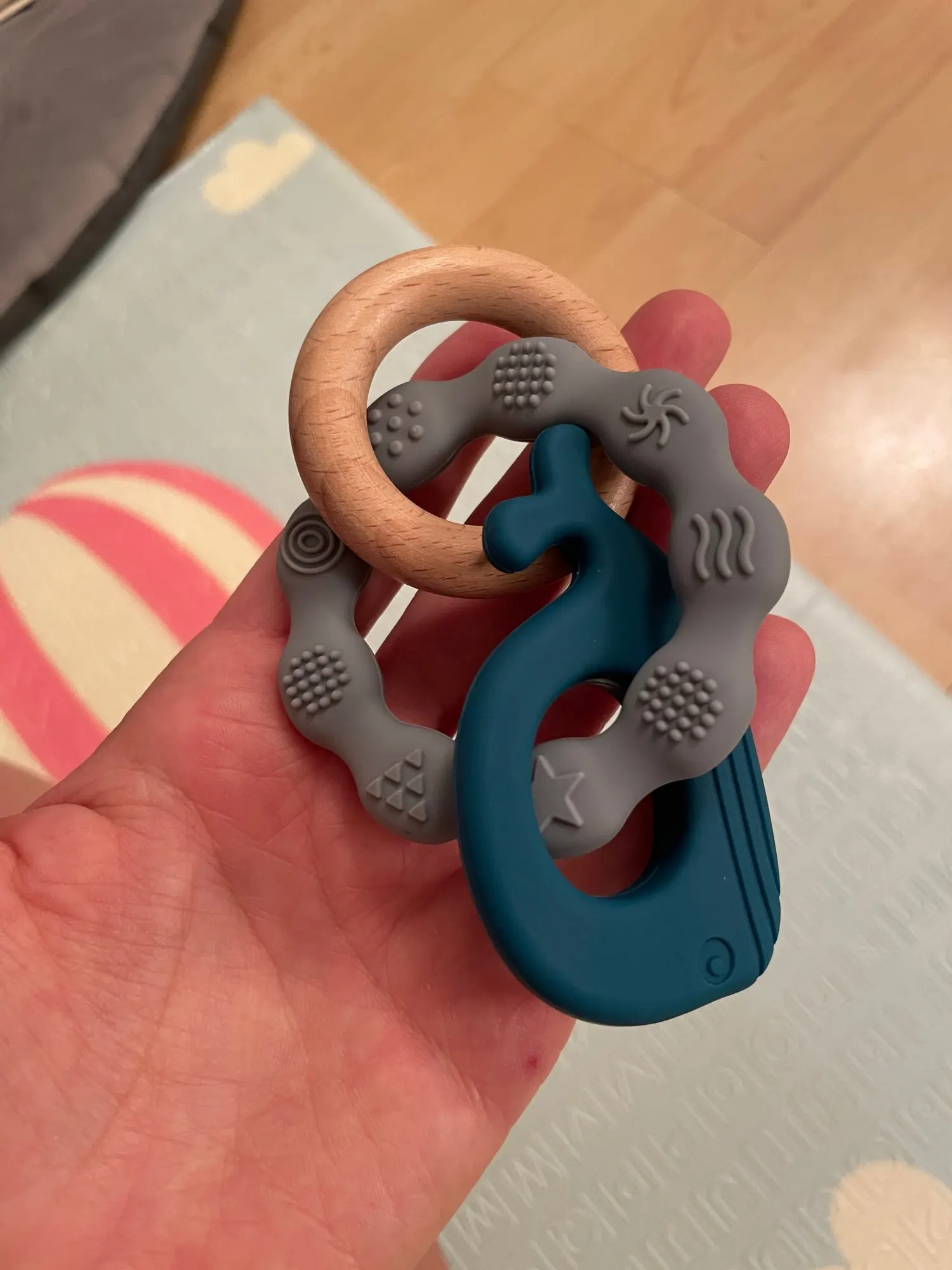Отличные прорезыватели, мягкие и приятные. Цвет темнее, чем на фото продавца. Размер небольшой. Малыш оценил.