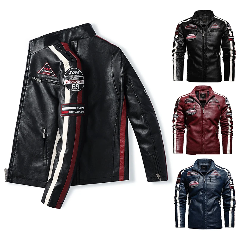 Куртка мужская из искусственной кожи, Осень-зима, в стиле пэчворк