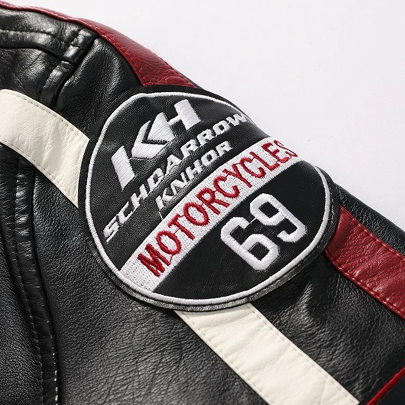 Мужская мотоциклетная куртка из ПУ кожи, с вышивкой, на молнии