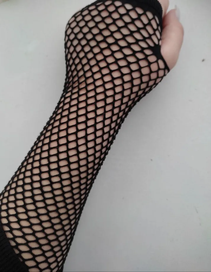 Новые Женские модные длинные ажурные Перчатки для Вечерние Перчатки из сетчатой ткани Перчатки в стиле панк для выпускного вечера однотонные Перчатки с закрытыми пальцами
