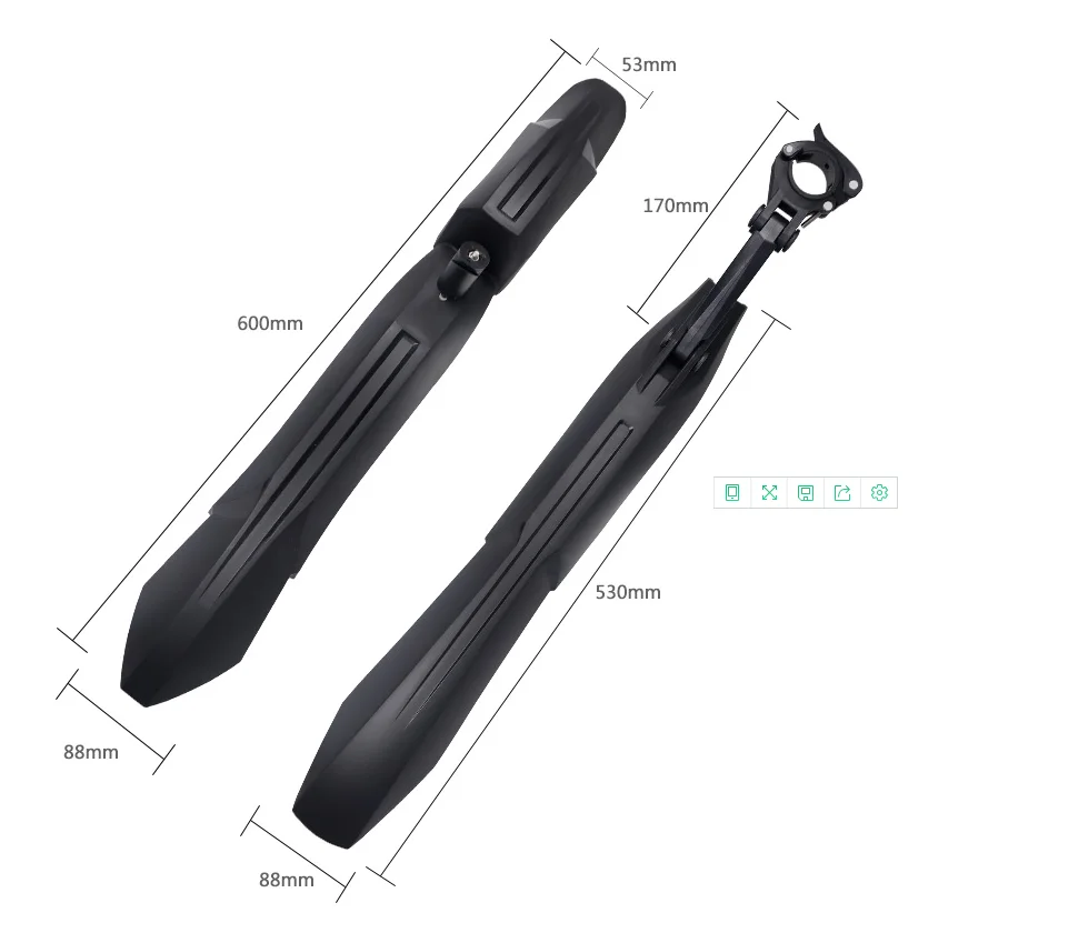 Высококачественный материал, Небьющийся, прочный в использовании и погодеДополнительная ширина, длина и глубокий паз, подходит для MTB 24 '',26'', 27,5 '', 29''Обтекаемая форма обеспечивает остановку брызг грязи, сниженное сопротивление воздухаПереднее крыло с новым дизайном в одном блоке, а не 2 шт в соединенииЗаднее крыло с двумя поворотными рычагами для улучшения покрытия шин и крепления велосипедаСверхнадежная система быстрого крепления легко регулируетсяТеплые советы:Подходит для горного велосипеда 24-29 дюймовКрепление заднего крыла: подходит для труб диаметром 27,2-34,9 ммКрепление переднего крыла: подходит для диаметра. 22-26 мм