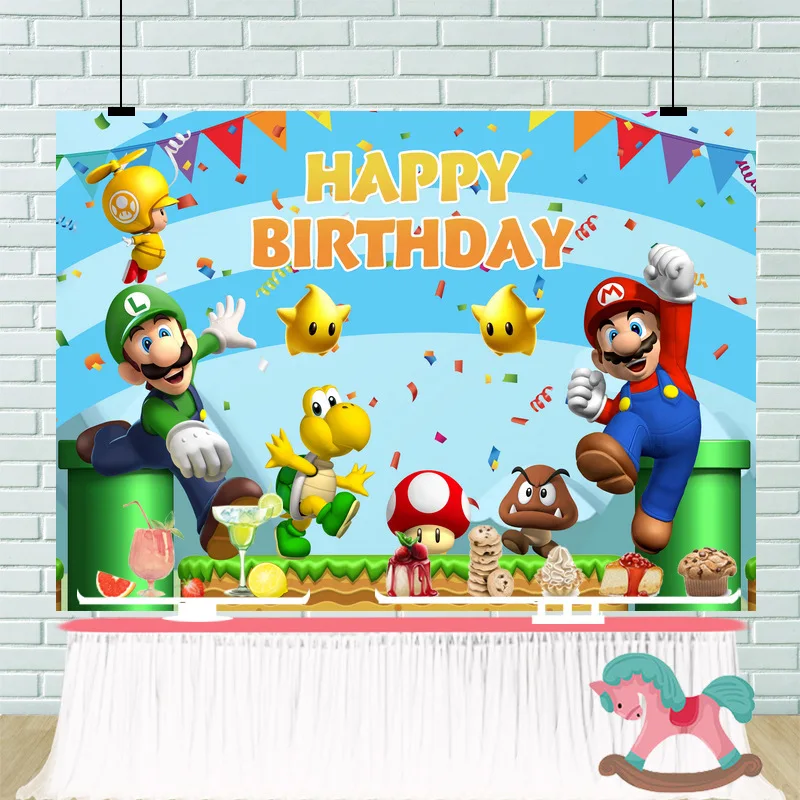 Фоновая ткань в стиле Super Mario, украшение для празднования дня рождения Марио, 125*80 см