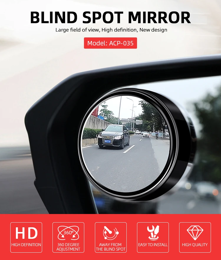 Зеркало заднего вида автомобильное круглое, регулируемое на 360 градусов