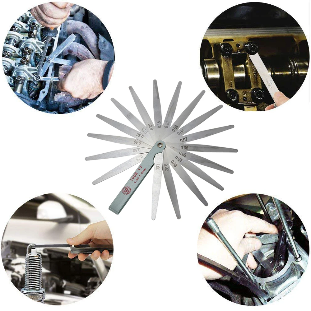 Щуп с 17 толщинами лезвий, стальной метрический зазор, измерительный инструмент от 0,02 до 1 мм для щупа, калибровочный клапан