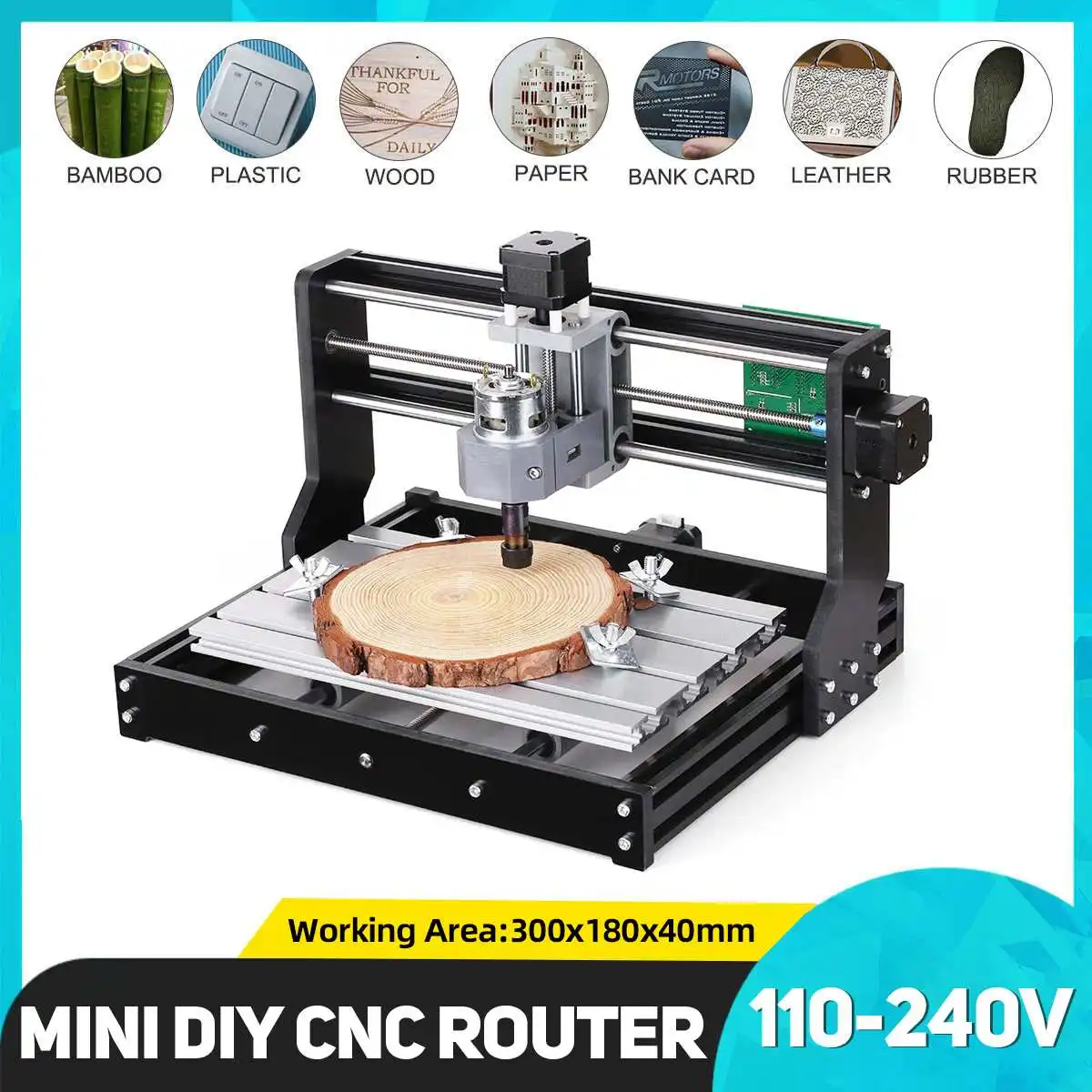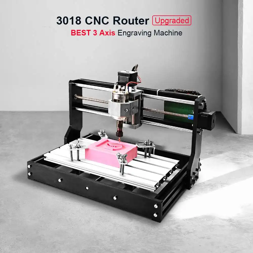 ОБЩАЯ СПЕЦИФИКАЦИЯ Модель Обновленная версия CNC3018(Без лазерного модуля) Материал оправы Алюминиевый сплав, бакелит Цвет Черный Площадь стола Прибл. 400*330*240 мм Рабочая зона Прибл. 300*180*40 мм Вес продукта 4,5 кг Программное обеспечение управления для шпинделя GrblControl Программное обеспечение управления для лазера Litefire Системные требования Windows XP , Win7, Win8, Win10. Штепсельная Вилка адаптера 2-Pin штепсельная вилка стандарта США Входное напряжение адаптера AC 110-240V 50/60Hz Выходное напряжение адаптера DC 24V 4A Особенности 1. Алюминиевый профиль стабильная конструкция2. 3 A xis подвижный, регулируемый скоростной мотор шпинделя3. Содержит руководство Quickstart по GRBL4. 300x180x40 мм рабочая зона, удовлетворяет потребности большинства любителей DIY5. Гравировка по дереву, пластику, акрилу, PCB или аналогичному материалуНе может выгравировать металл, сталь, алюминий. Технические параметры Рабочее напряжение Постоянный ток 24 В Интерфейс USB Шаговый двигатель 42 шаговый двигатель, напряжение: 12 В, фазовый ток 1.3A, крутящий момент 0.25N.m Мотор шпинделя 775 мотор шпинделя (12-36 в) 24 В: 10000р/мин, 36 В: 12000р/минОсобенности: