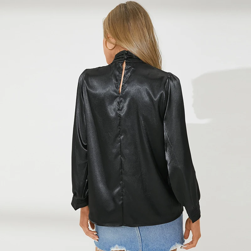 Женская атласная блузка, с высоким воротником, осенняя, 2021