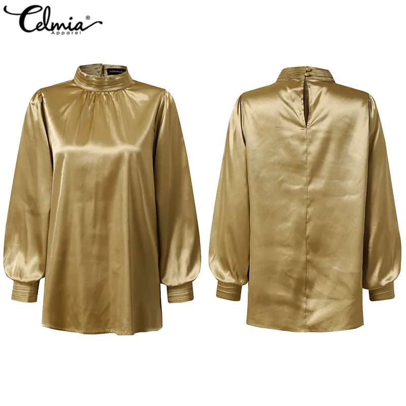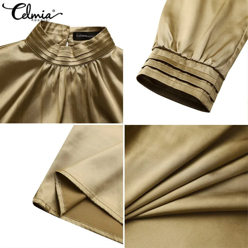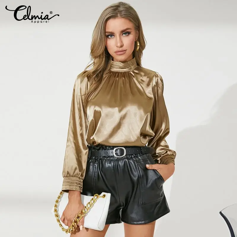 2022 Модные женские атласные блузки Celmia Элегантная туника с высо...