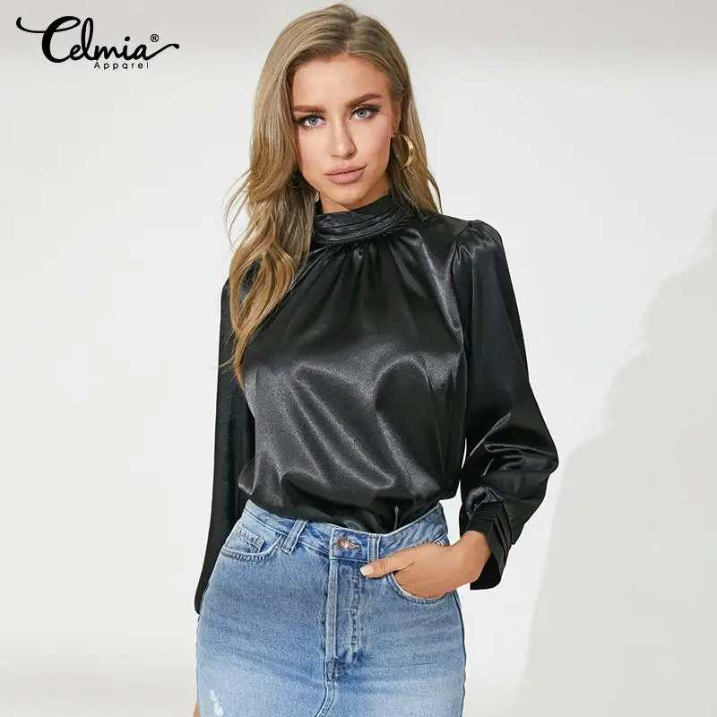 Модная атласная блузка Celmia 2021, женские элегантные офисные топы...