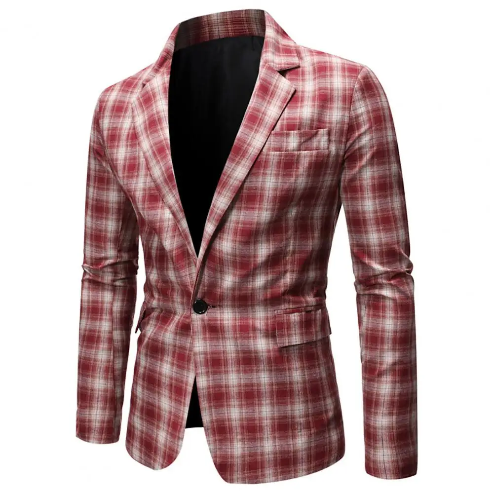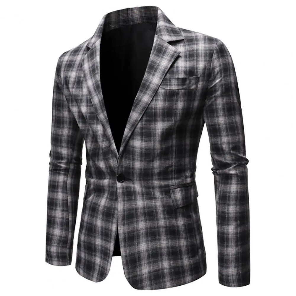 Мужской деловой Блейзер, с карманами и лацканами, с длинным рукавом, в клетку, на одной пуговице, для осени