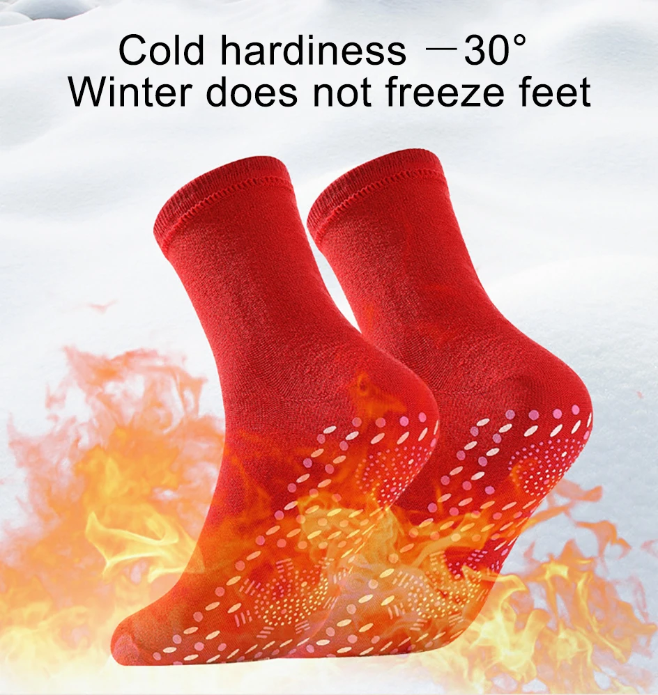 Самонагревающиеся Носки для мужчин и женщин, массажные носки с магнитной терапией, носки с подогревом для здоровья, нескользящие носки в горошек, снимающие усталость, зимнее теплое оборудование