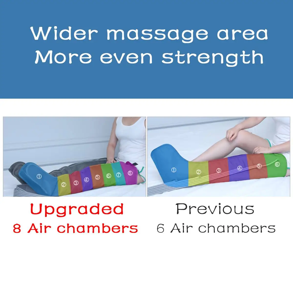 Особенности:◆ 8 воздушных камер. Более широкая Массажная зона. Дайте вам более комфортный опыт массажа.◆ Высококлассный мощный двигатель. Мягкая и удобная ткань из ТПУ.◆Можно массировать и расслаблять ноги, руки и талию.◆Простая и простая в эксплуатации.