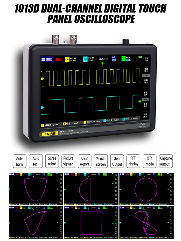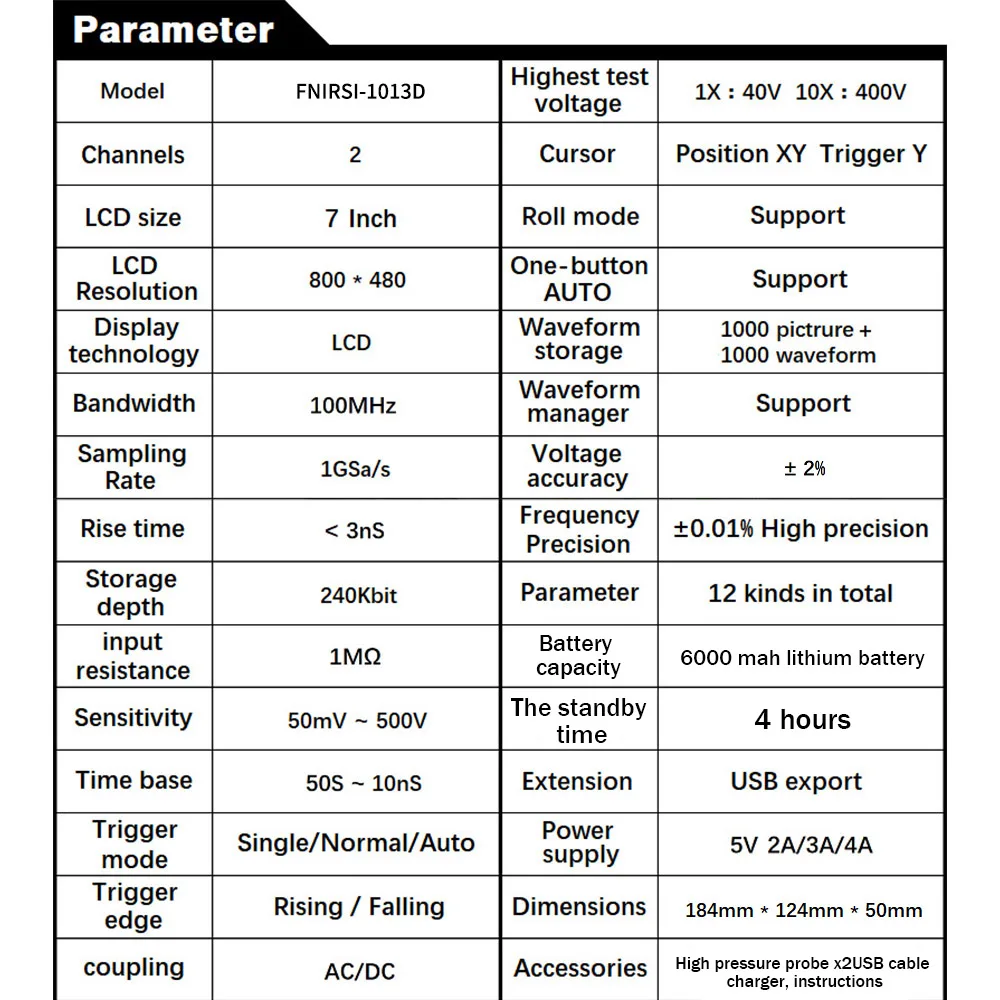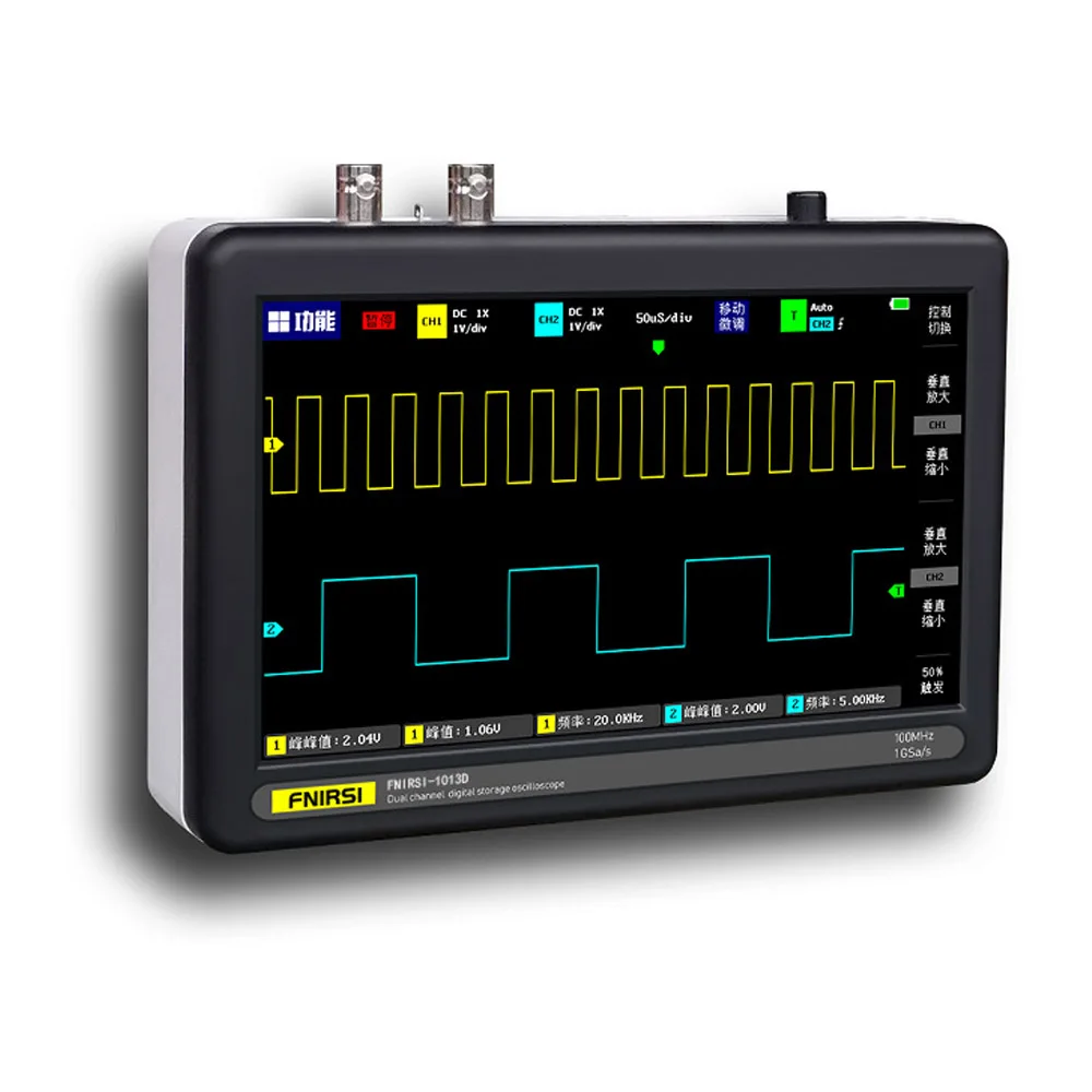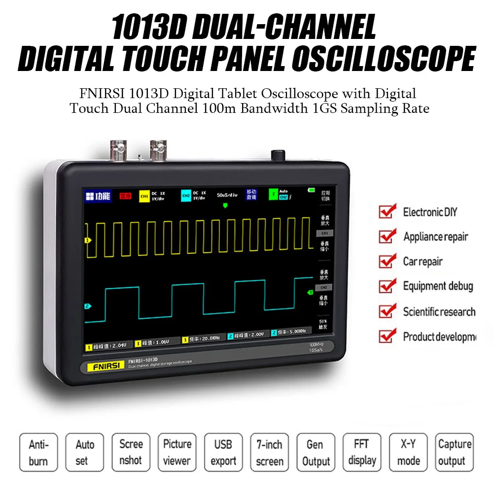 Цифровой осциллограф FNIRSI 1013D, портативный планшетный портативный осциллограф с сенсорным двухканальным датчиком, полоса пропускания 100 м, частота дискретизации 1GS